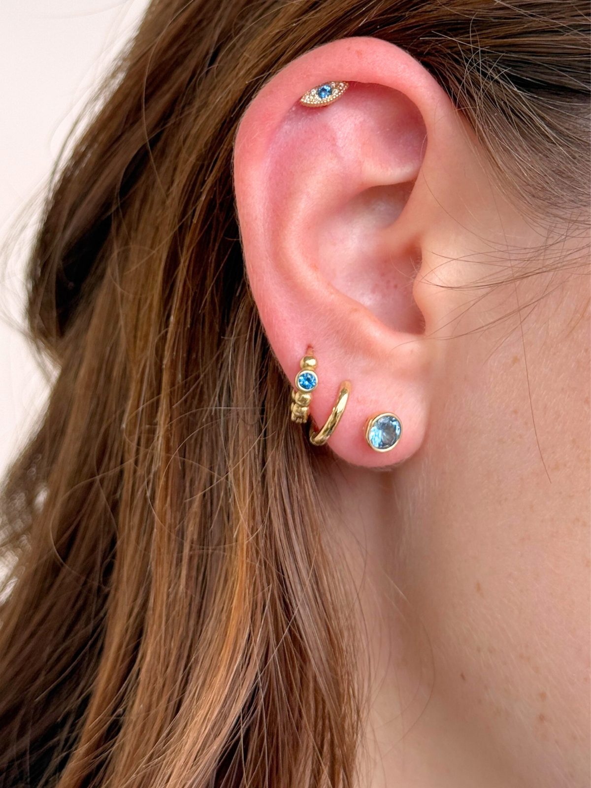 Adorn your ears with fine gold jewelry with our best-selling earring collection. Each earring style, from our solid 14k gold huggies to our sparkling conflict-free diamond flat-back studs, is meticulously crafted, beckoning you not just to wear but to radiate confidence. Gift a loved one a sparkling reminder of home as they carve their path, or adorn yourself with these gems, empowering you to chase the stars with grace and style.