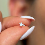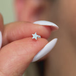 Star Flat Back Stud Earrings in Solid 14k White Gold