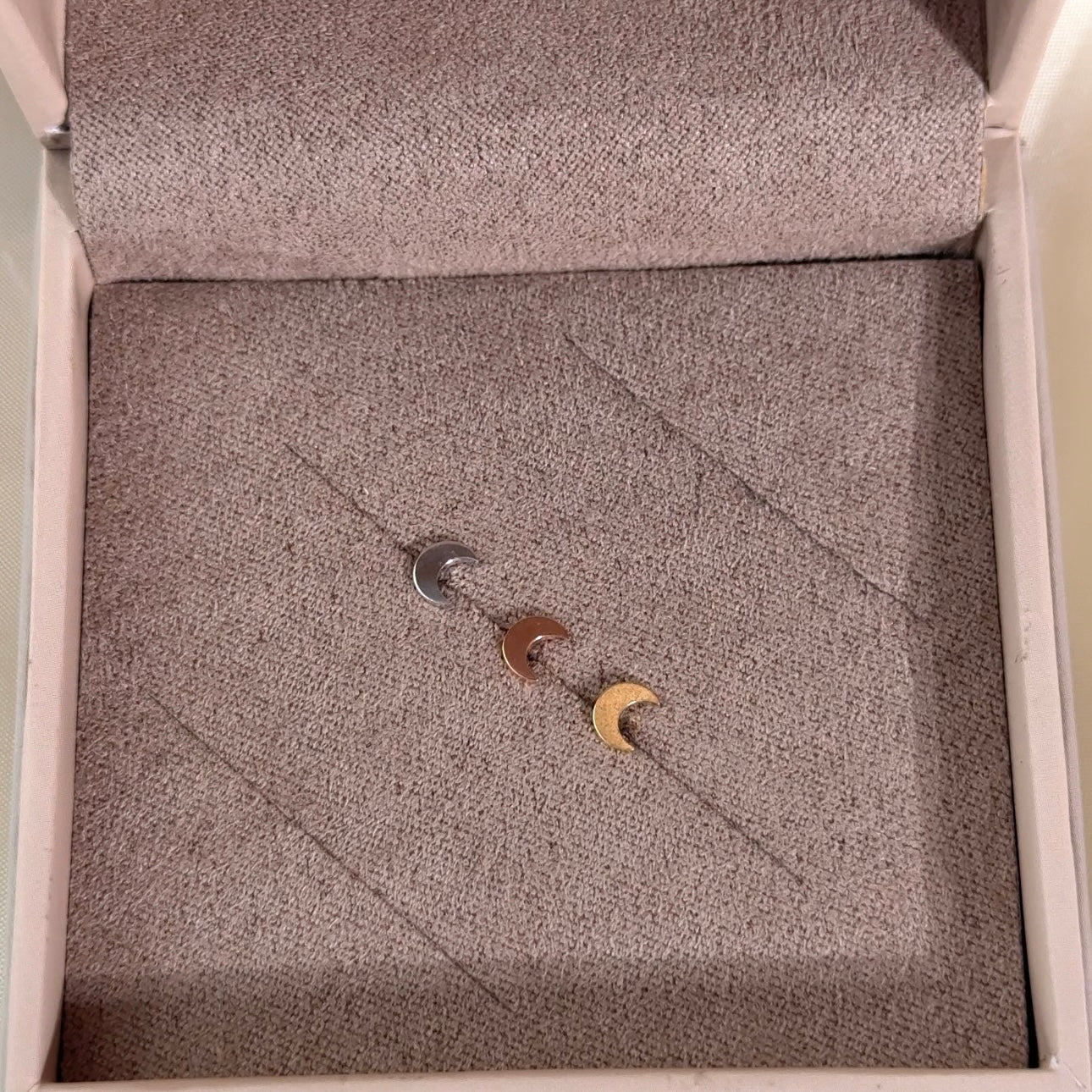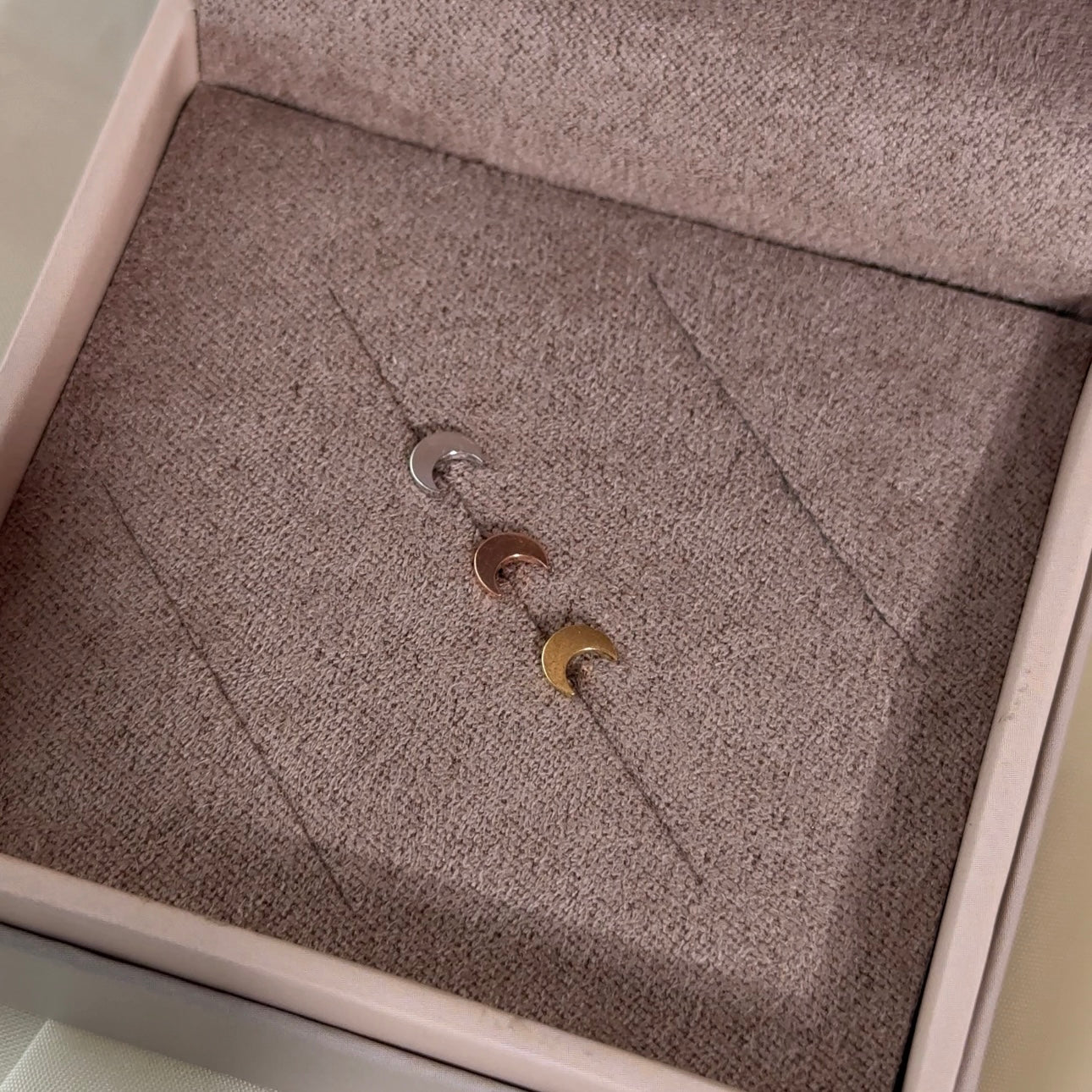 Designed in a bright polished finish and 14k solid gold, these lightweight moon studs are perfect for everyday wear.