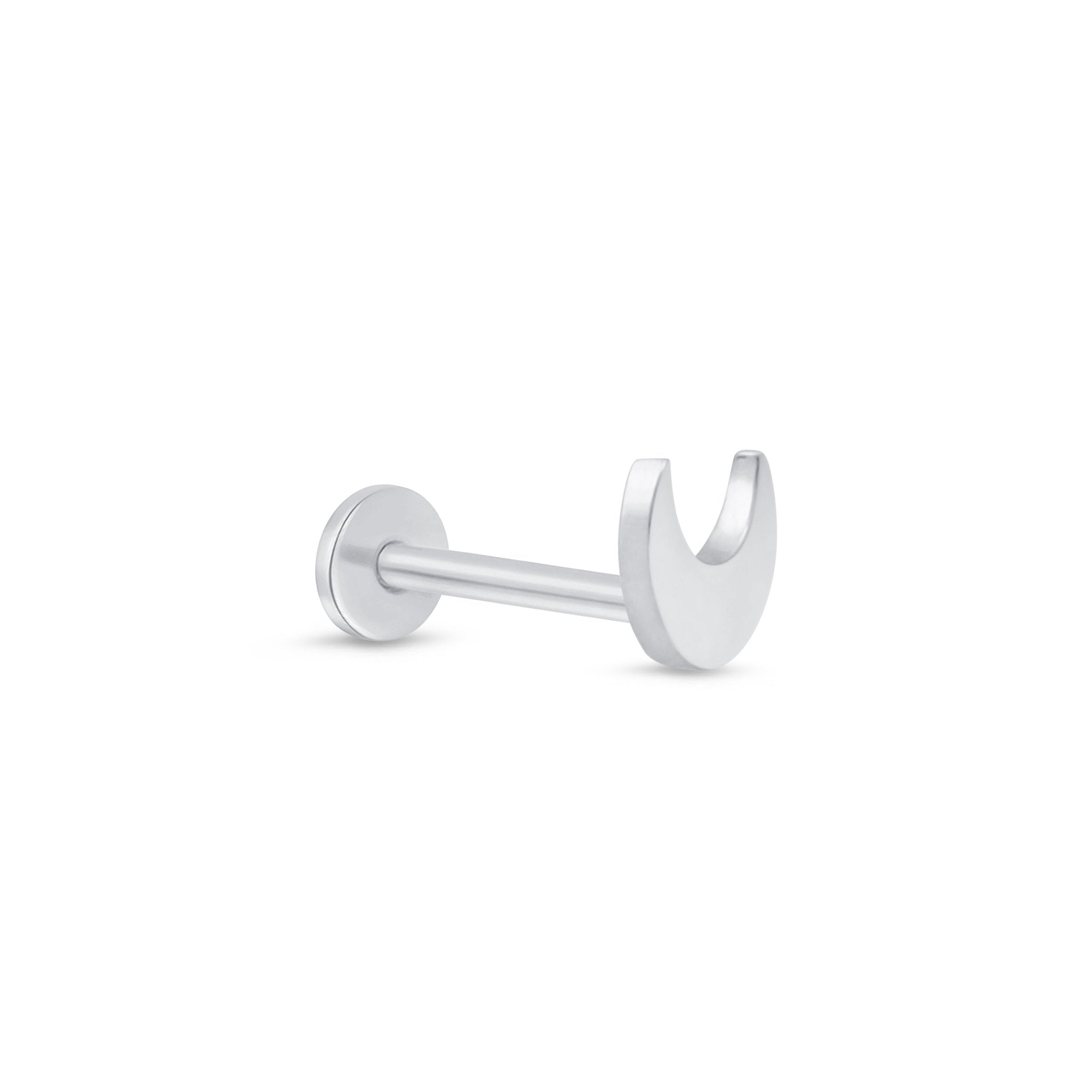 Crescent Moon Flat Back Stud Earrings in Solid 14k White Gold