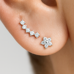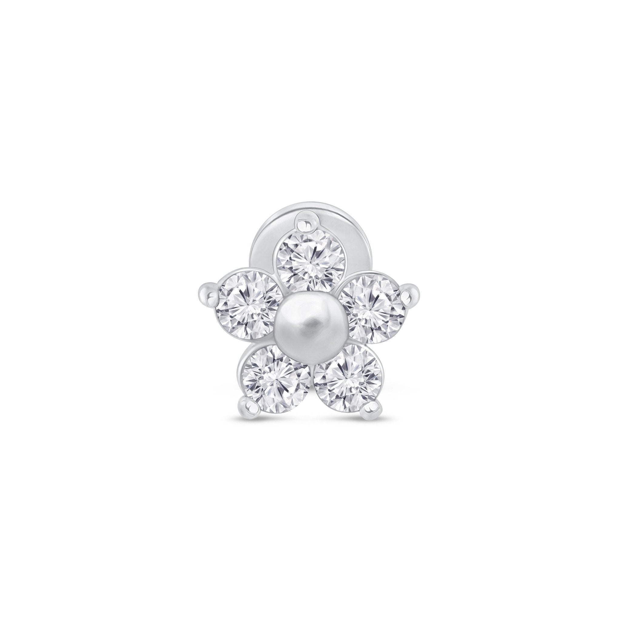 Diamond Flower Flat Back Stud Earrings in in Solid 14k White Gold