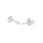 Diamond Heart Cupid's Arrow Flat Back Stud Earrings in Solid 14k White Gold