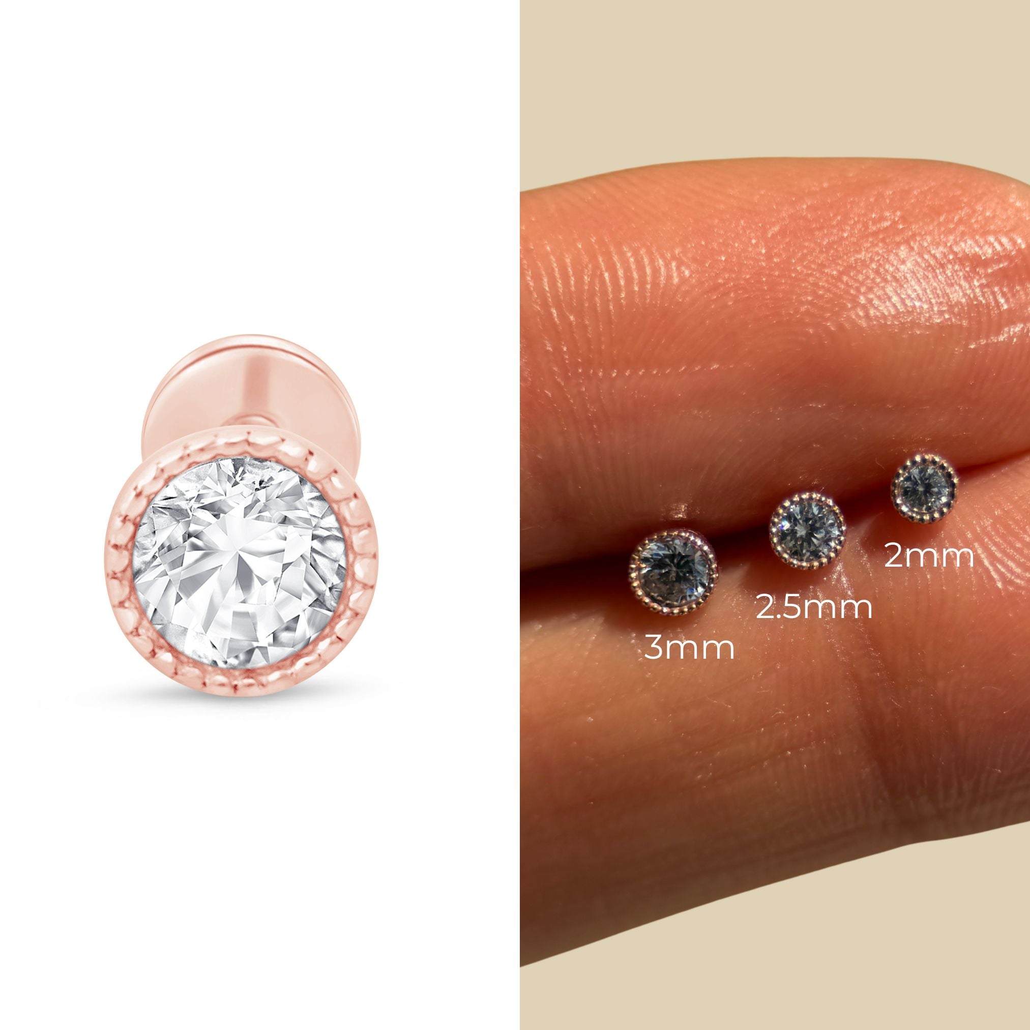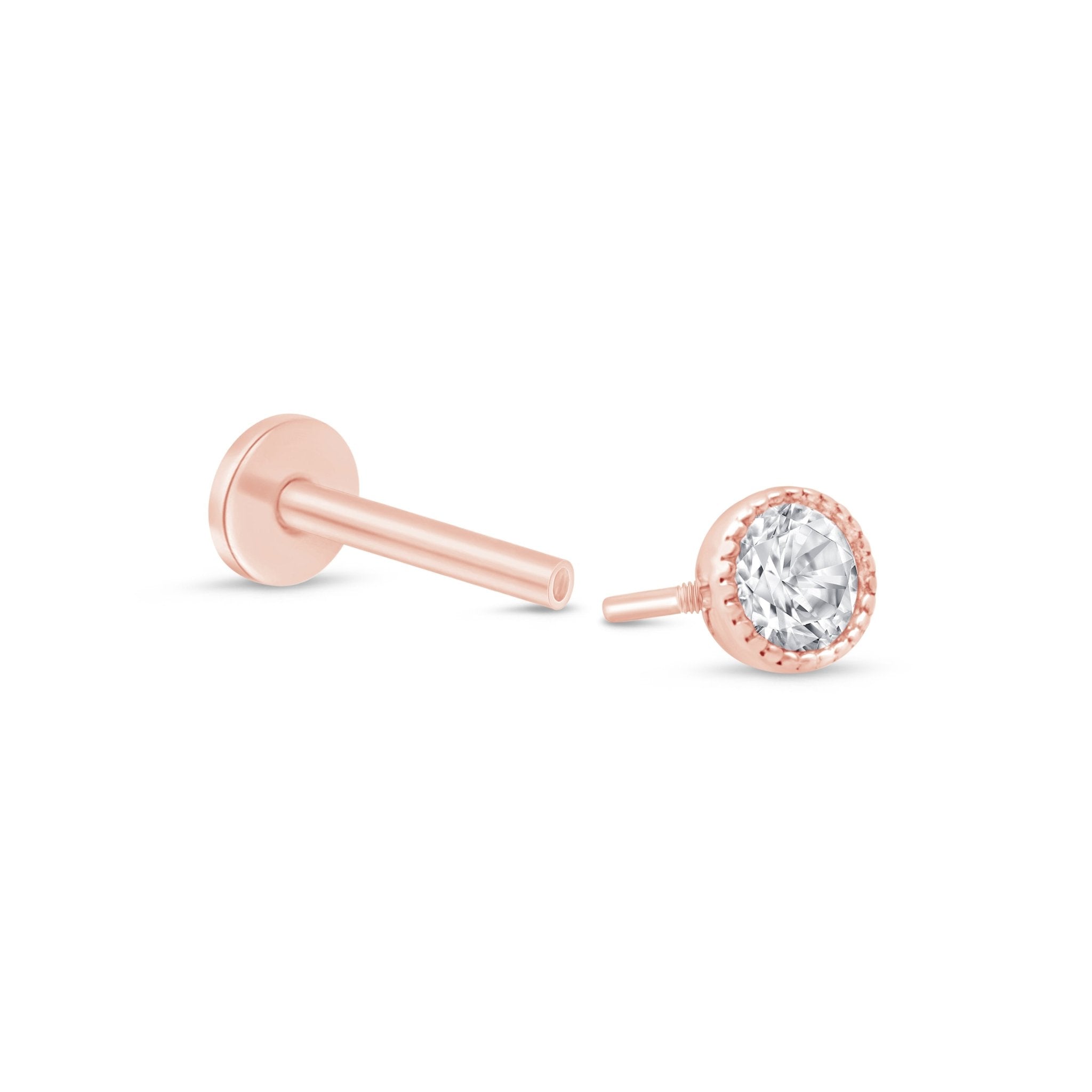 Gemstone Flat Back Stud Earrings Milgrain Set in Solid 14k Rose Gold