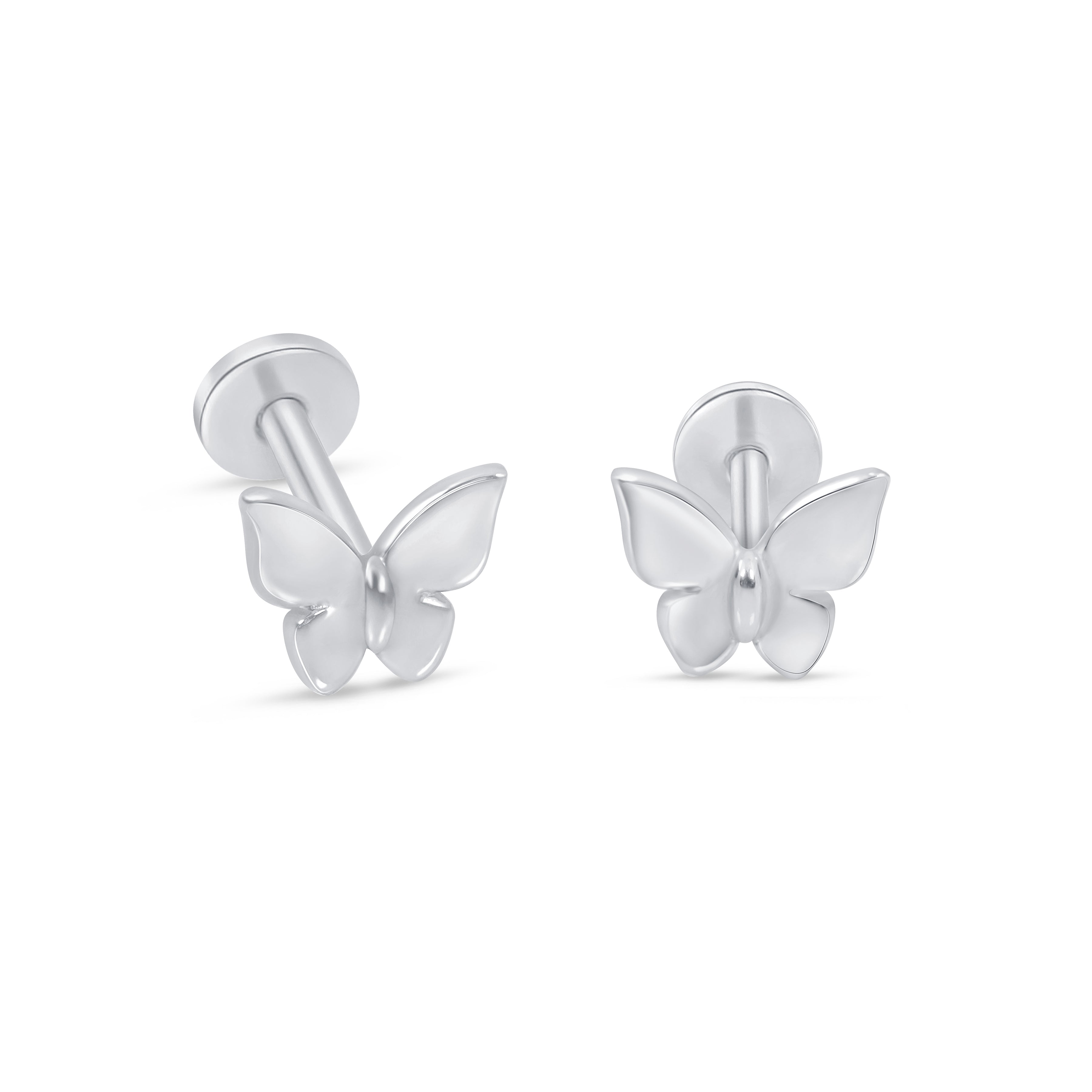 Butterfly Flat Back Stud Earrings Flat Back Stud Earrings in Solid 14k White Gold