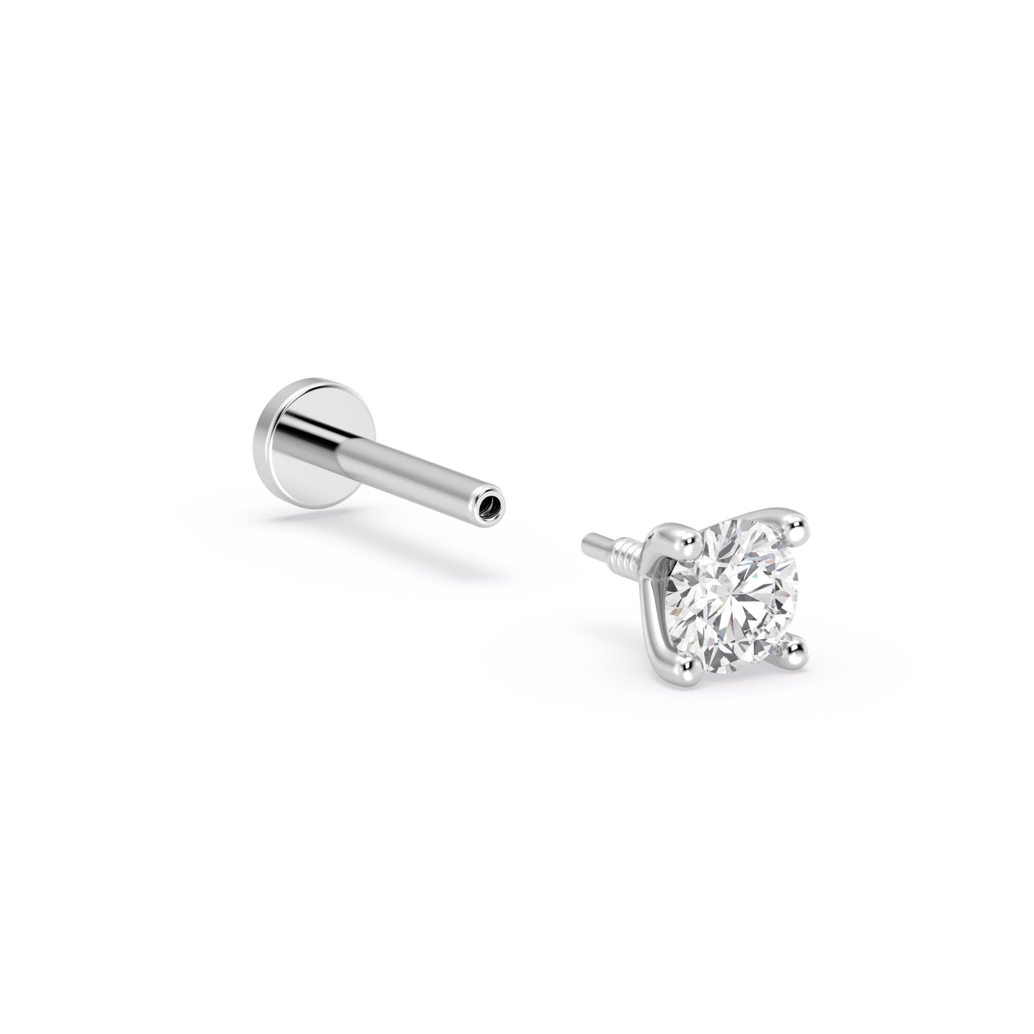 Diamond Threaded Flat Back Stud Earrings in Solid 14k White Gold