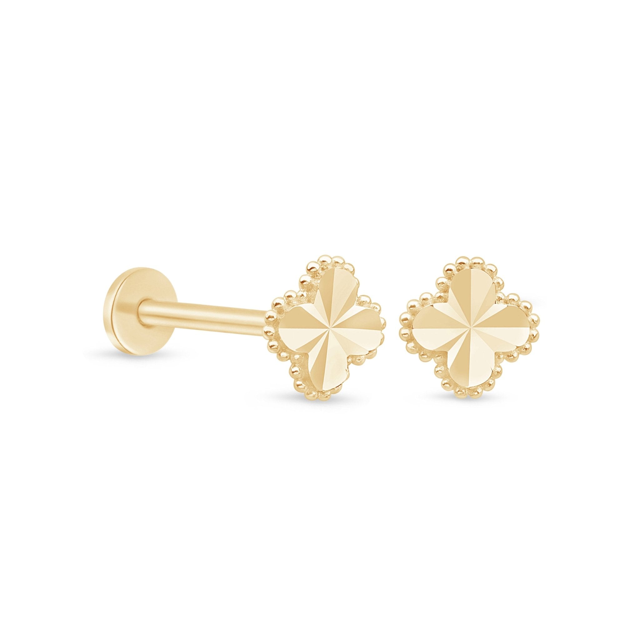 Diamond Cut Solid 14k Yellow Gold Clover Flat Back Stud Earrings