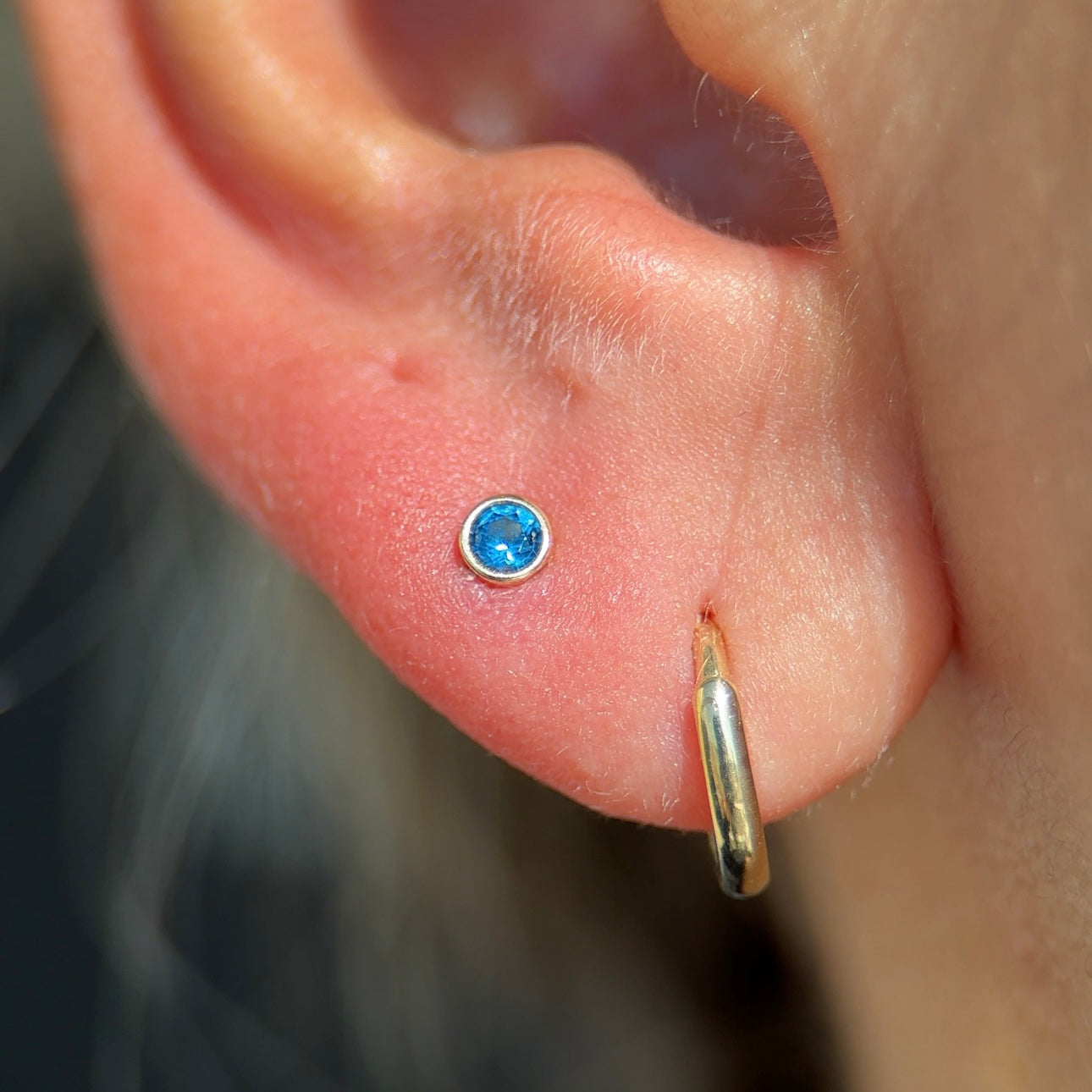 With a touch of sparkle and a beautiful blue hue, these beautiful bezel set created Topaz Flat Back Studs are the perfect way to add some color to your everyday attire. They're also made in solid 14k gold for a sleek finish.