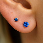 Petite in size and lightweight, these premium 14k gold blue created Sapphire piercing stud earrings are the perfect selection for adding a little bling that is chic for your brand-new ear curation! Designed in a high-quality, bright, polished finish, these hypoallergenic, non-irritating created Sapphire piercing studs are suitable for a variety of differently placed ear piercings placed on the ear. The smooth finish and touch of sparkle are perfect for all your different wardrobe changes and add a contemporary detail that is a fashion-forward statement for your pierced ears. Glittering round blue created sapphire that are securely prong set on the front and will not snag on your clothing.