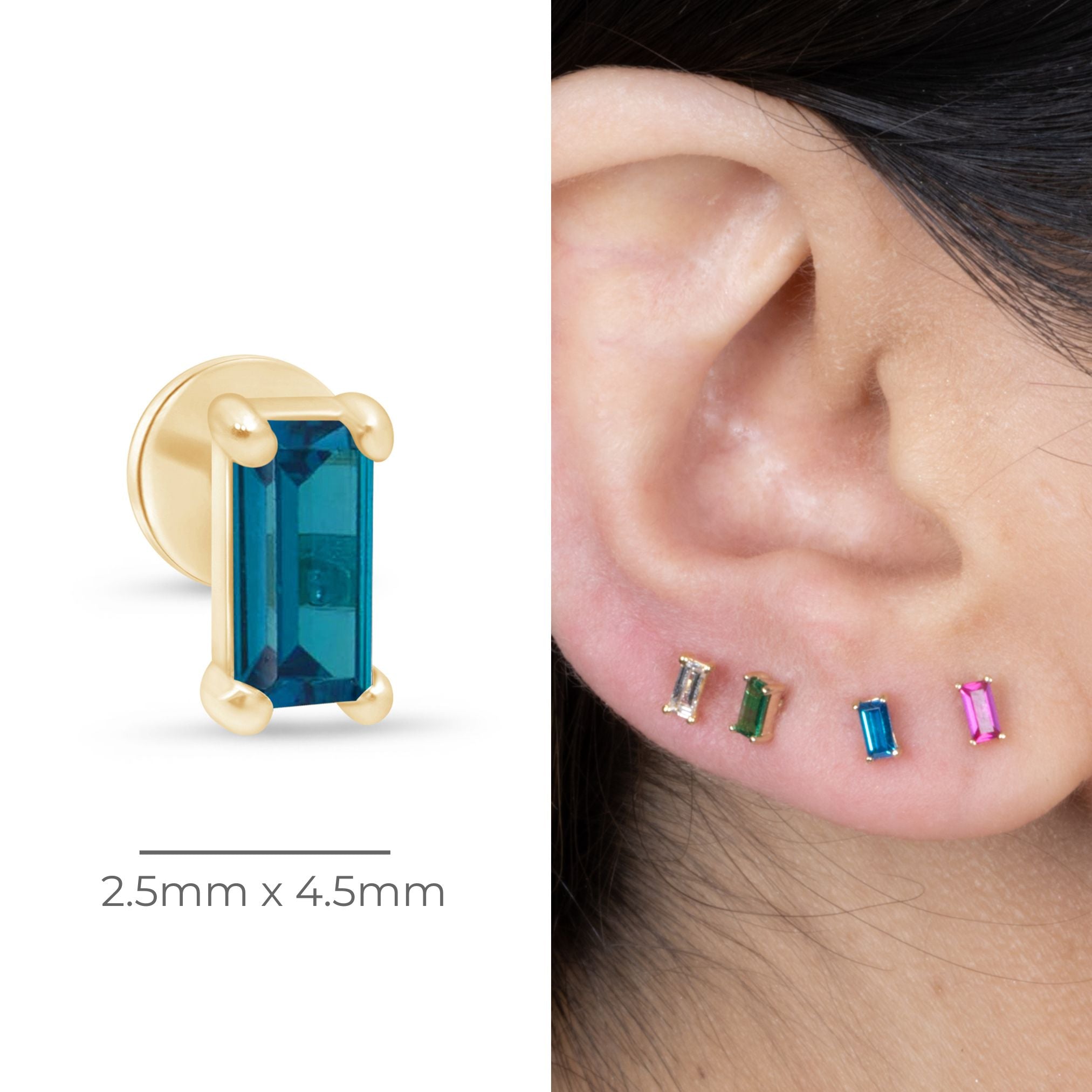 With a touch of sparkle and a unique vibrant blue hue, these beautiful baguette created Topaz Flat Back Studs are the perfect way to add some color to your everyday attire. They're also made in solid 14k gold for a sleek finish.