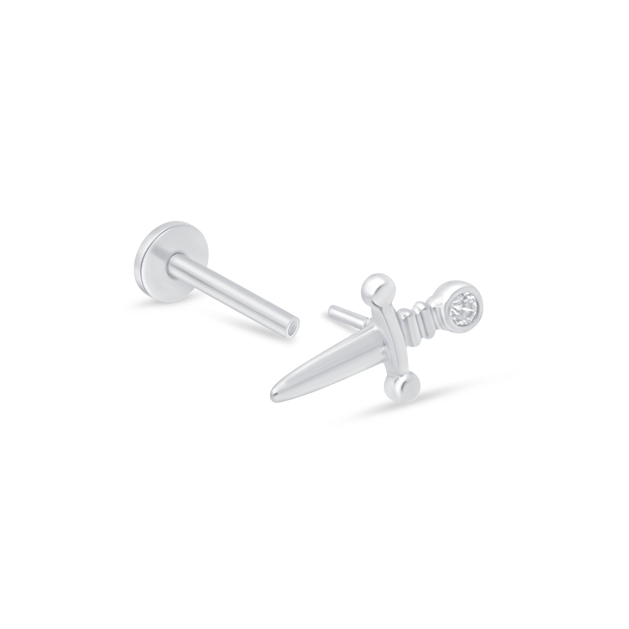 Dagger Flat Back Stud Earrings in Solid 14k White Gold