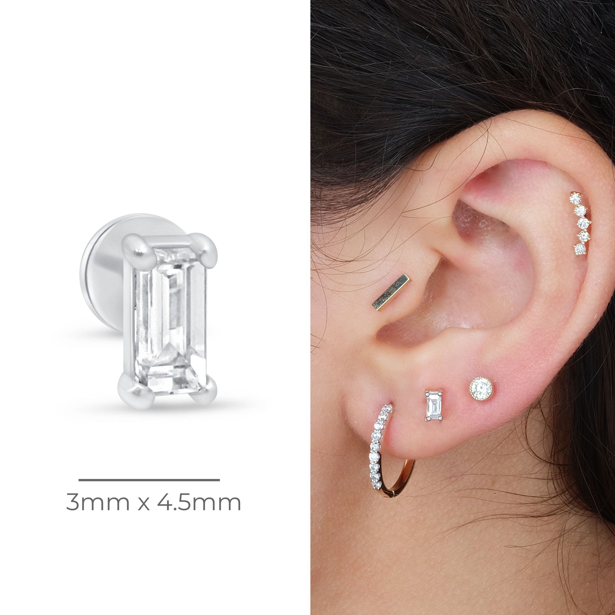 Diamond Baguette Flat Back Stud Earrings in Solid 14k White Gold