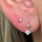 Diamond Threaded Flat Back Stud Earrings in Solid 14k Yellow Gold