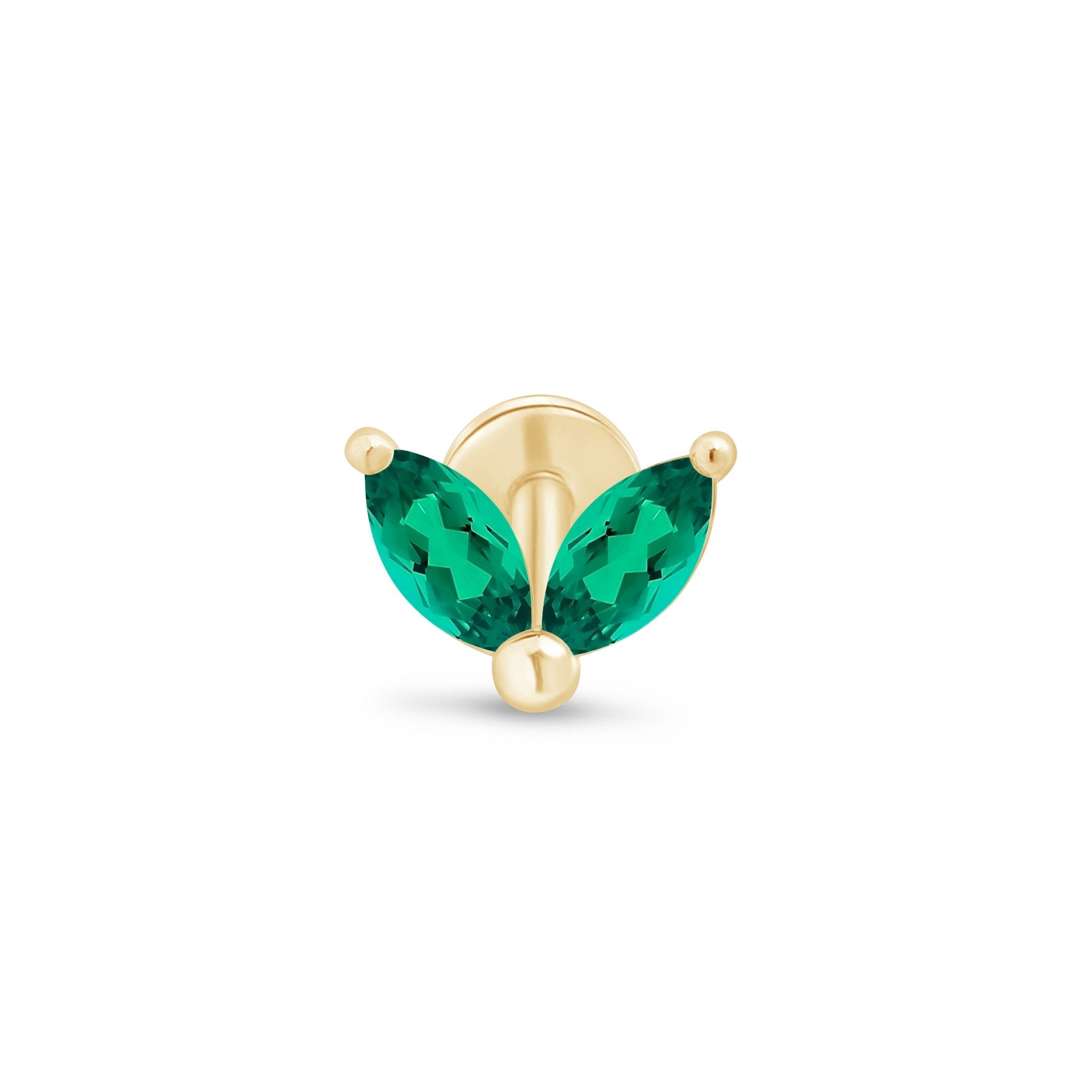 Emerald Double Marquise Flat Back Stud Earrings in Solid 14k Yellow Gold
