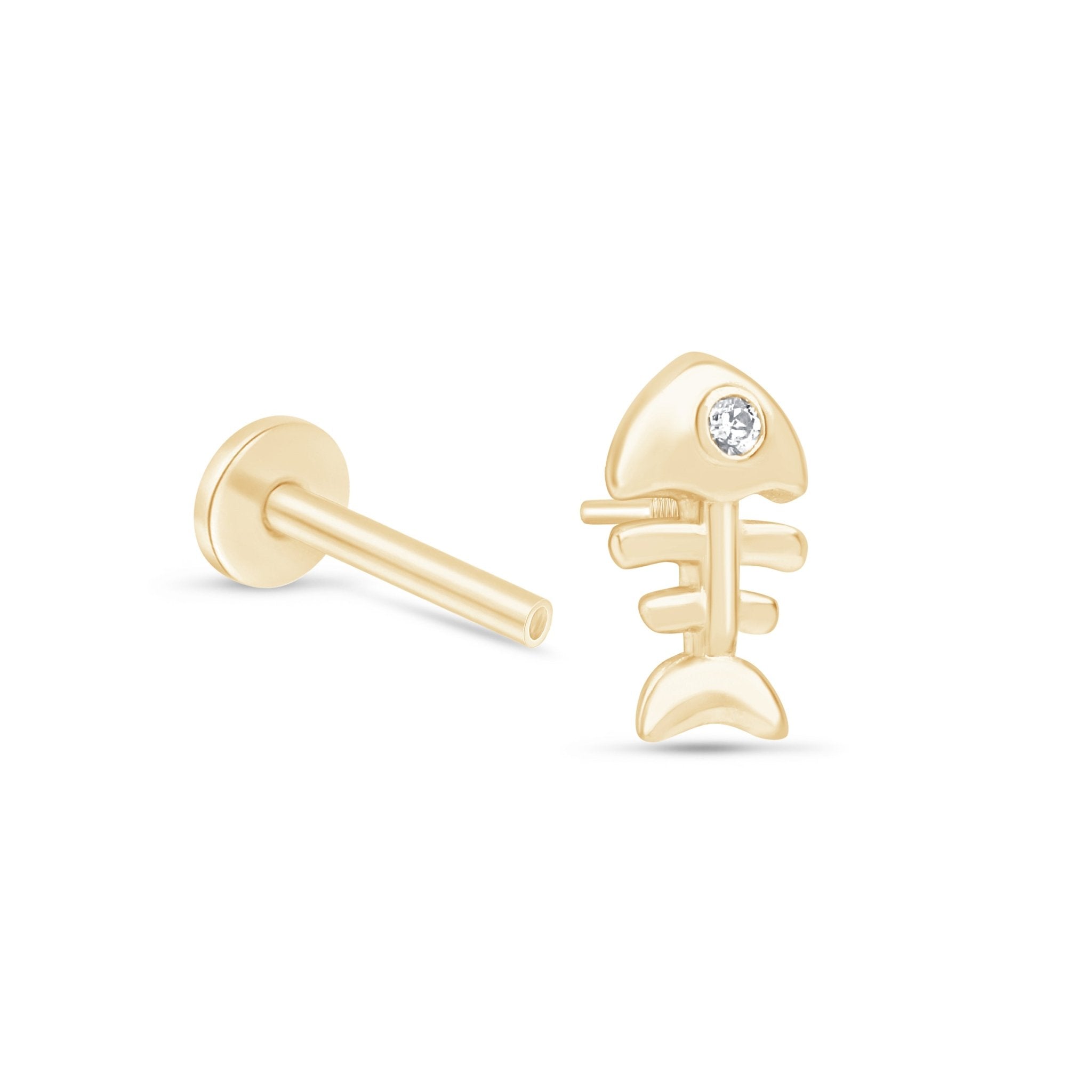 Fishbone Flat Back Stud Earrings in Solid 14k Yellow Gold