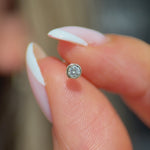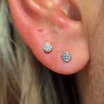 These classic diamond studs are made in an invisible solid 14k gold setting, making your diamonds look like they're floating on your skin. Our classic flat backs provide comfort for wear all day and night.