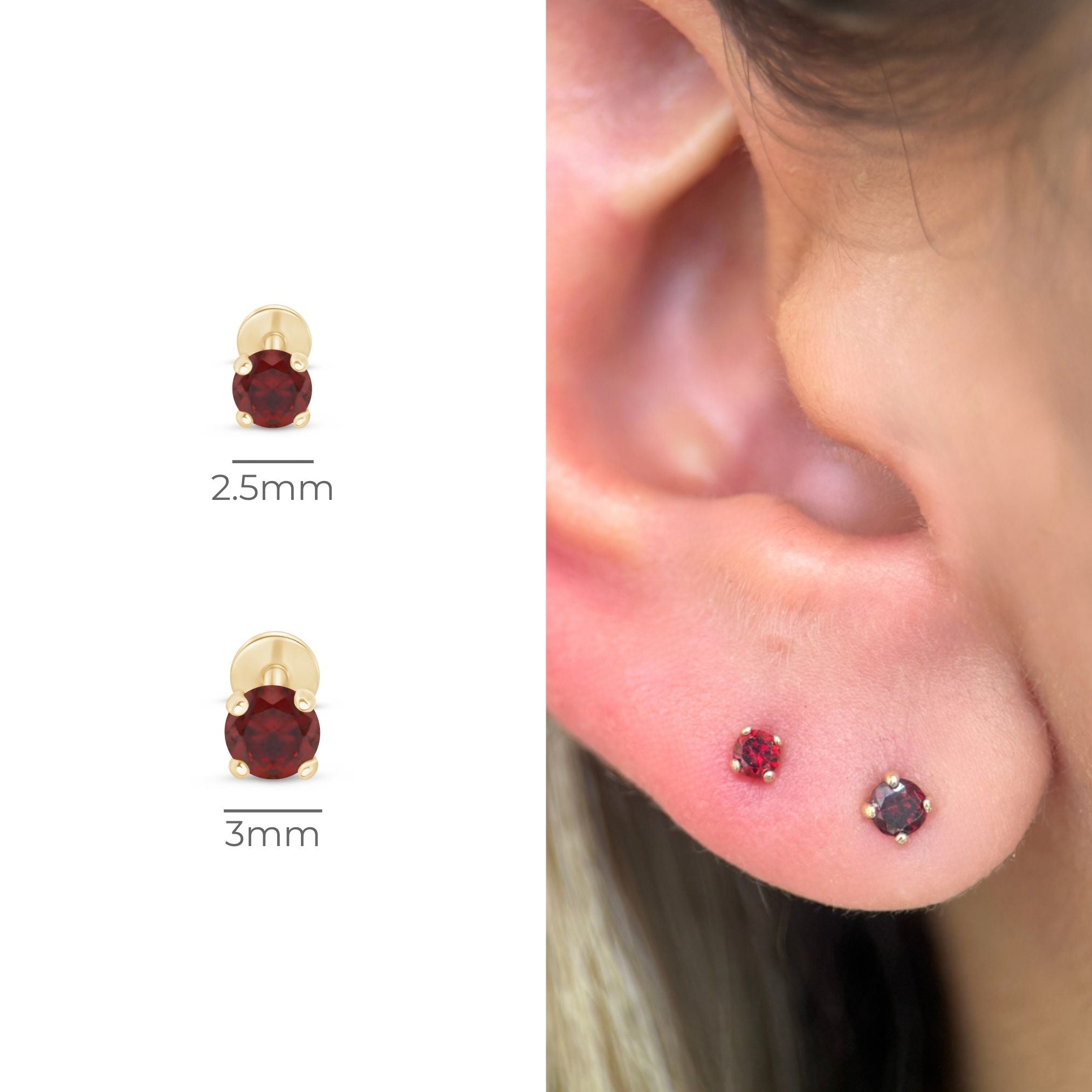 Garnet Cartilage Flat Back Stud Earrings in Solid 14k Yellow Gold