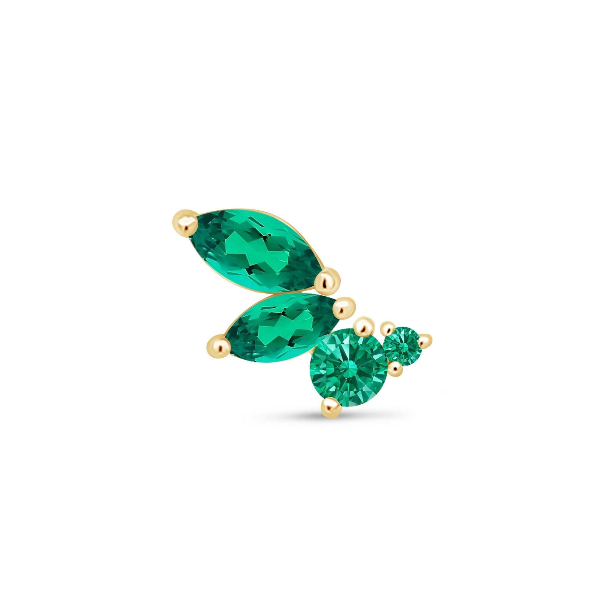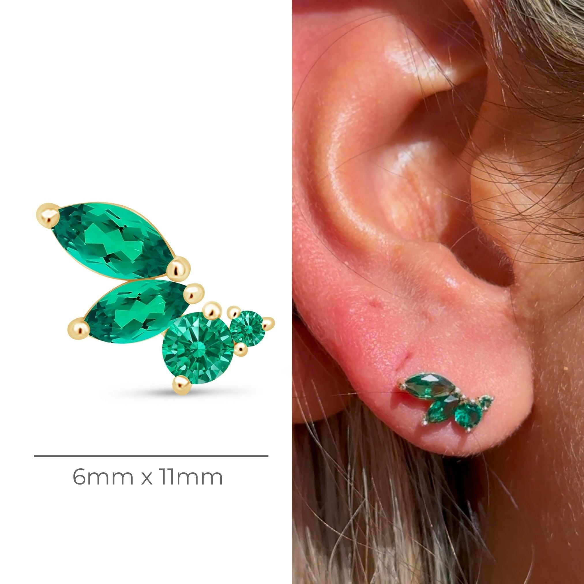 Green Emerald Marquise Wing Flat Back Stud Earrings in Solid 14k Yellow Gold