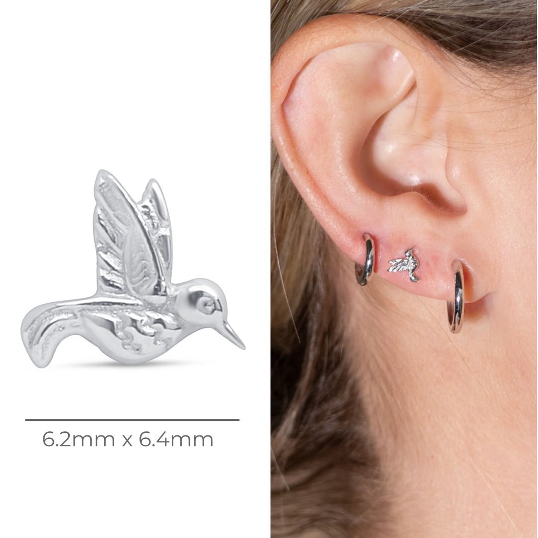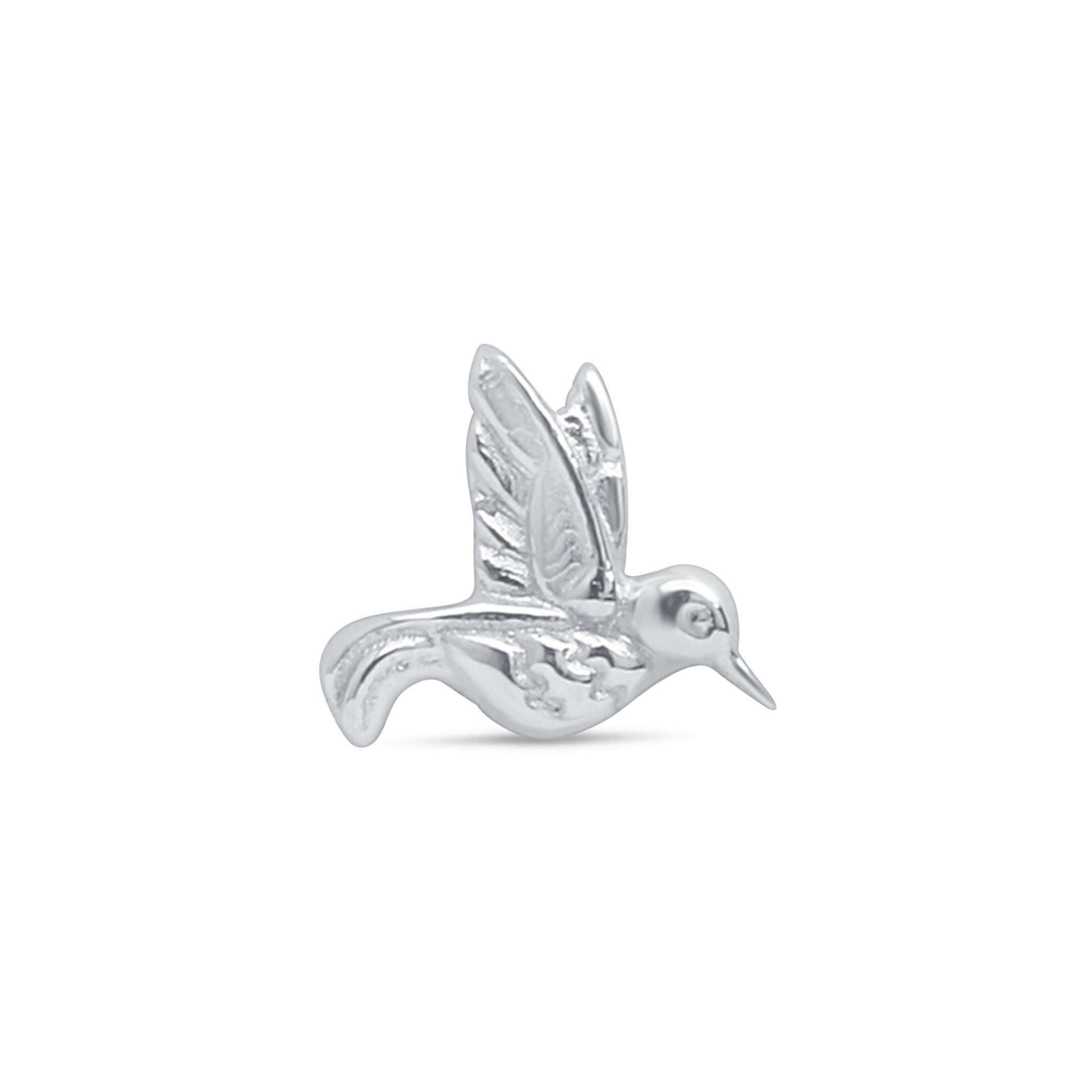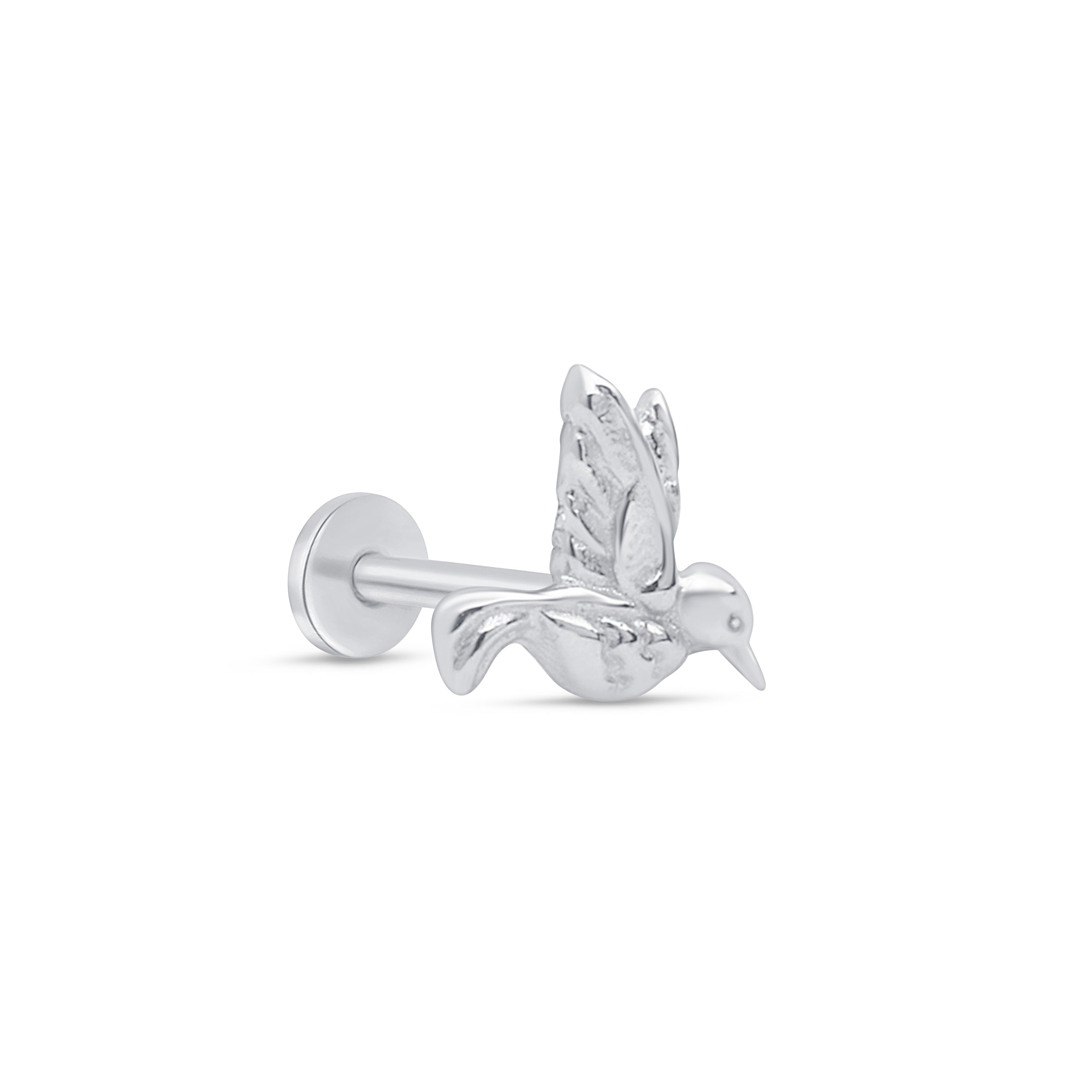 Hummingbird Flat Back Stud Earrings in Solid 14k White Gold