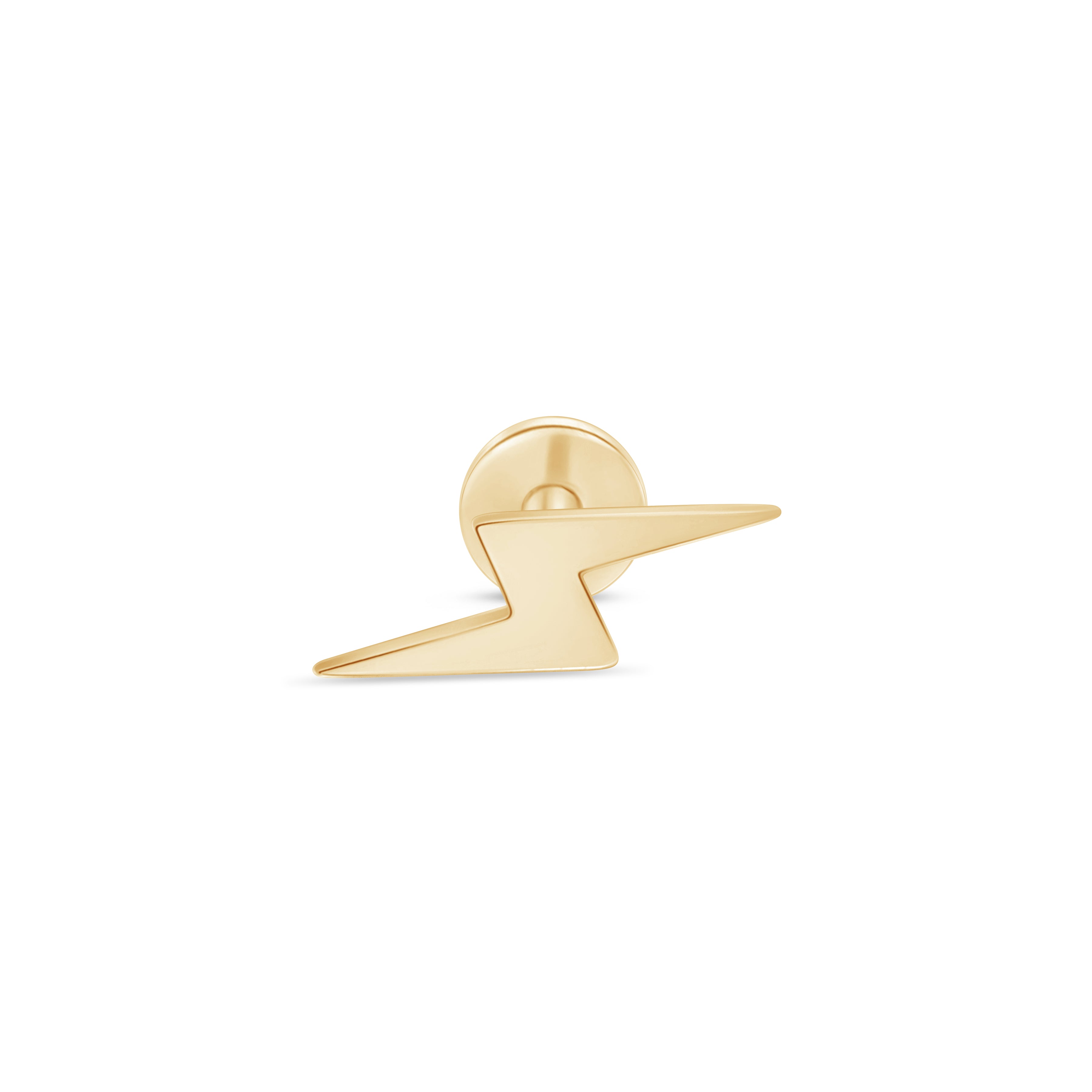 Lightning bolts symbolize inner knowing and illumination, long ago said to come from the gods in the heavens, including the Greek god, Zeus, striking down to earth as a metaphysical, spiritual warning. Lightning bolts are considered lucky omens, such as being €œstruck by lightning€ of good fortune and prosperity. Either way, these high-quality 14k gold lightning bolt piercing studs are an eye-catching, stylish selection for those who seek a unique look for their freshest ear piercing. Hypoallergenic and non-irritating, these premium 14k gold lightweight, petite gold studs are perfect for your any piercings or can easily be matched with small hoops and studs for neighboring ear holes.