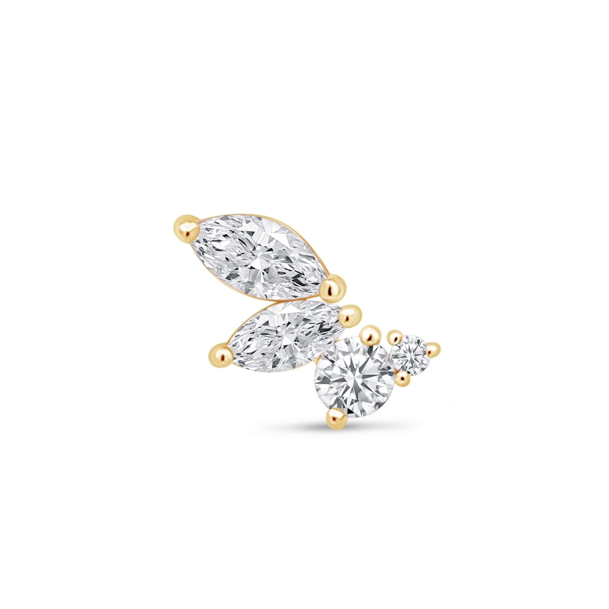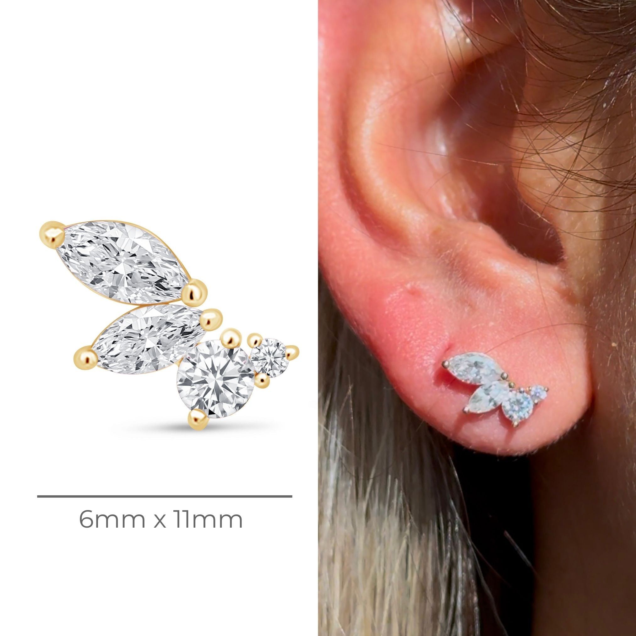Marquise Angel Wing Flat Back Stud Earrings in Solid 14k Yellow Gold