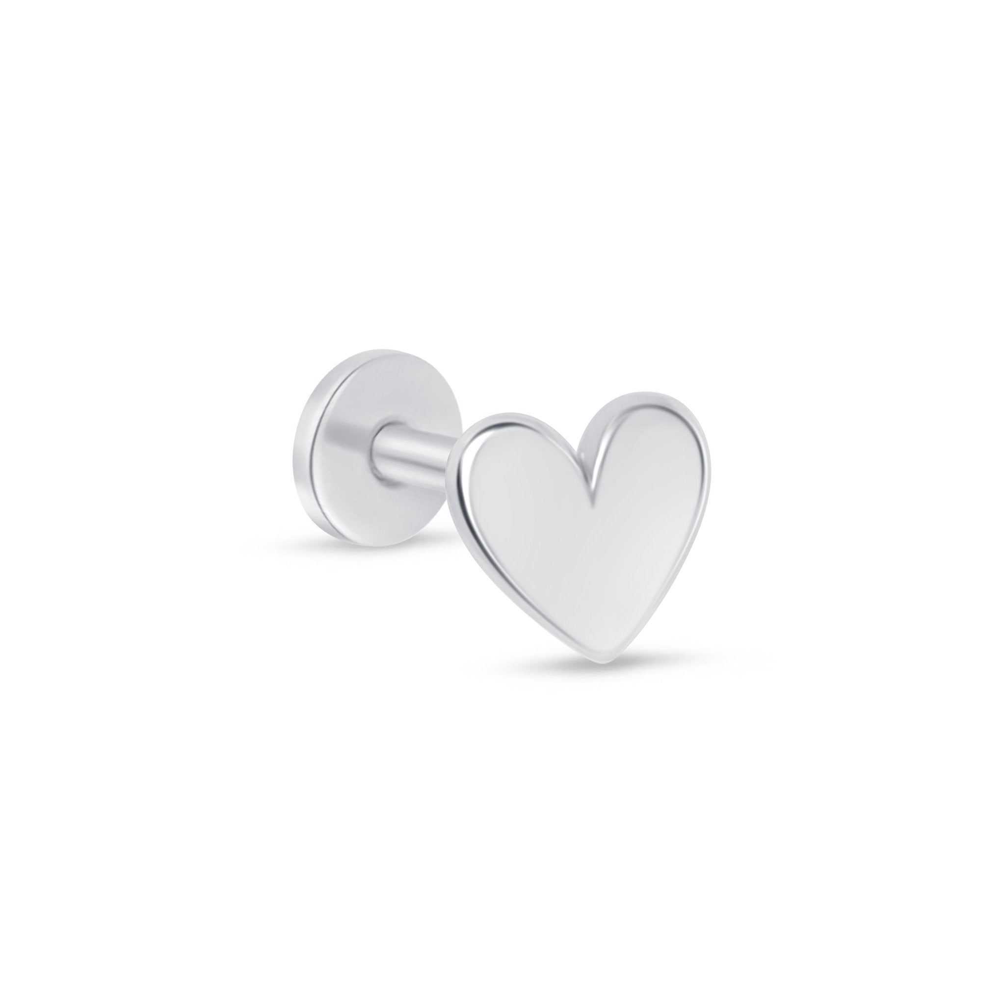 Minimalist Heart Flat Back Stud Earrings in Solid 14k White Gold