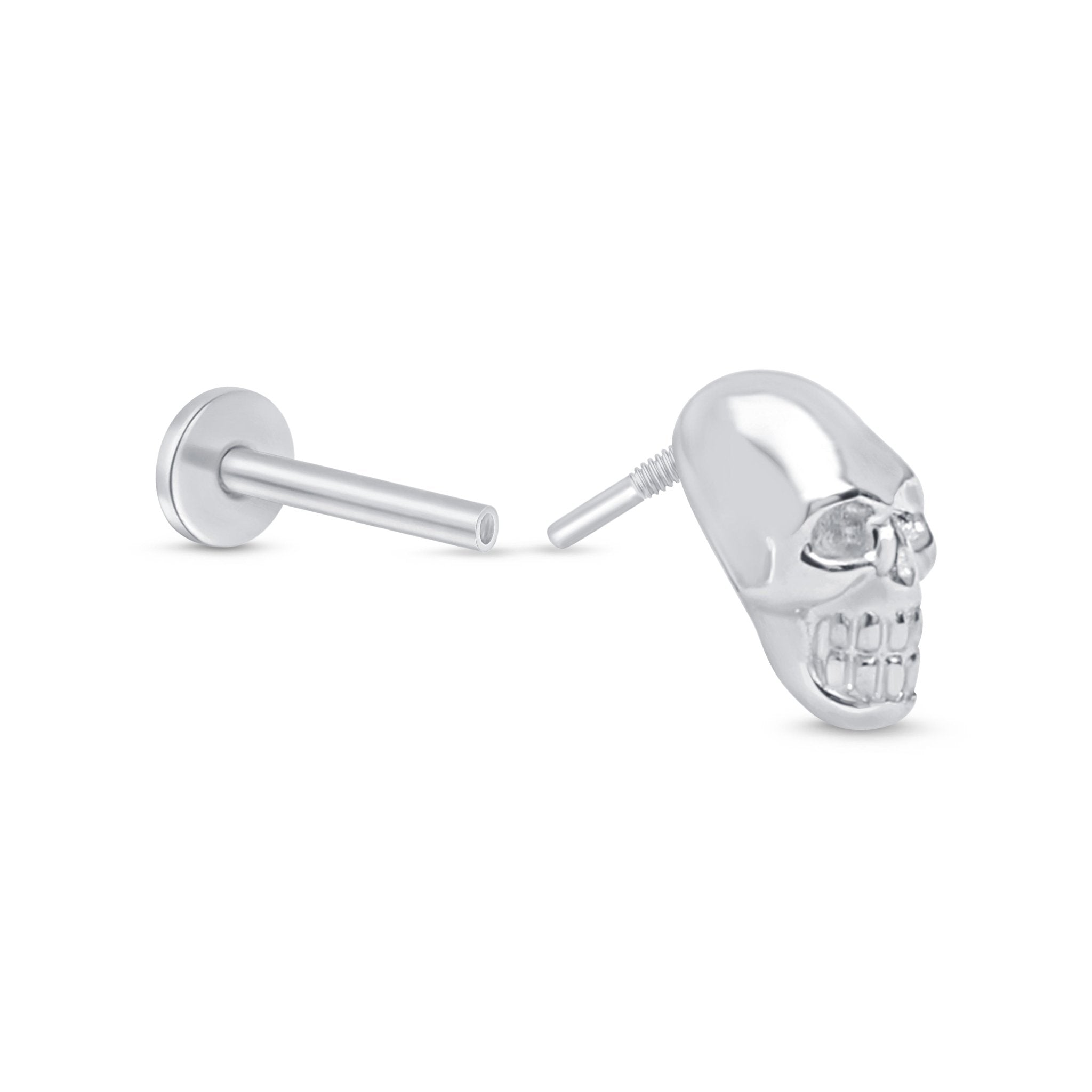 Minimalist Skull Flat Back Stud Earrings in Solid 14k White Gold