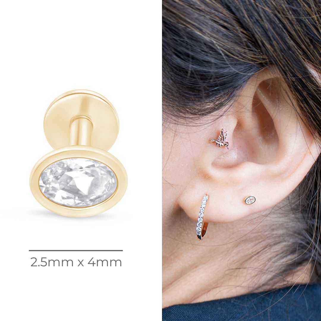 These oval cubic zirconia studs are versatile and go with any ear stack or outfit. The delicate gold bezel catches the light and adds shine factor. Created in brightly polished solid 14k yellow or white gold, these lightweight and hypoallergenic flat back earrings are perfect for everyday wear.