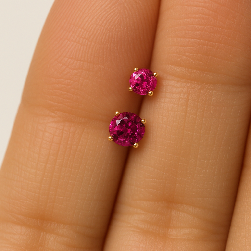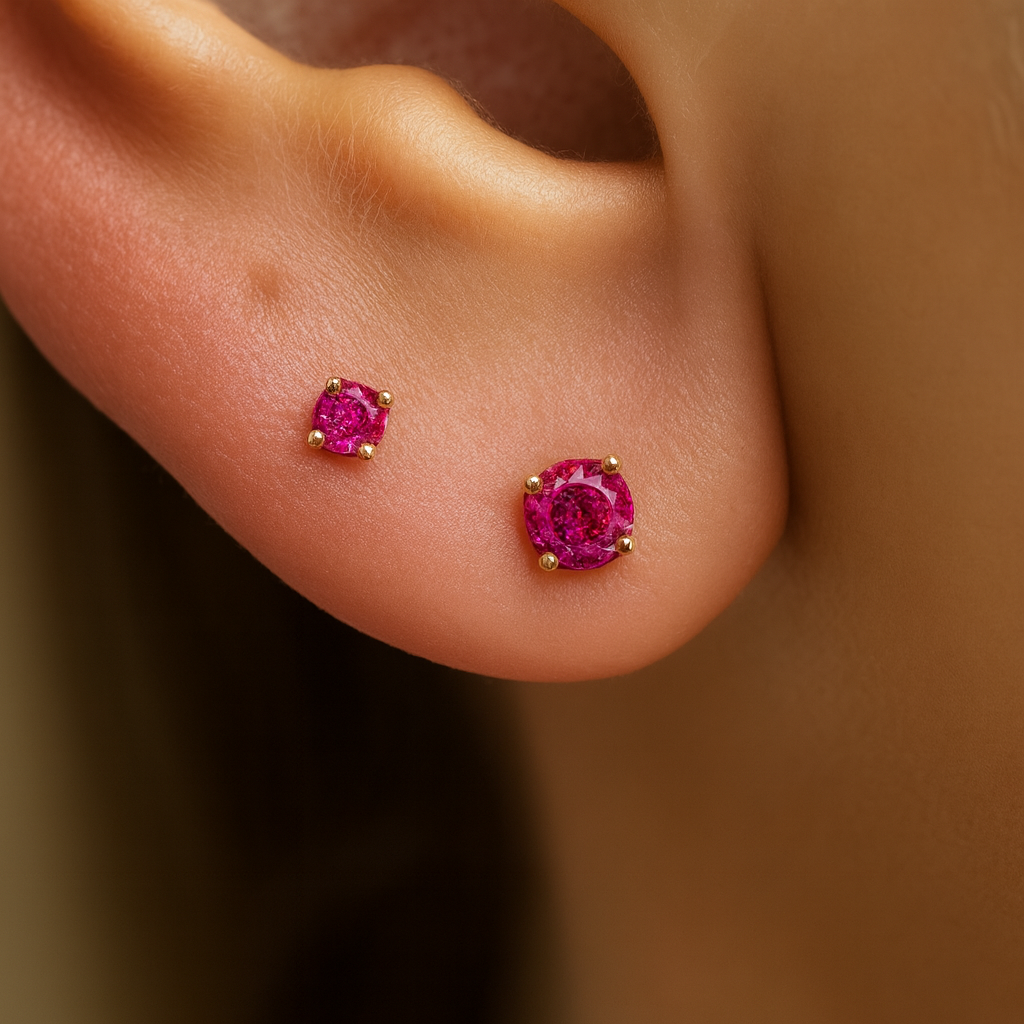 Ruby Cartilage Flat Back Stud Earrings in Solid 14k Yellow Gold