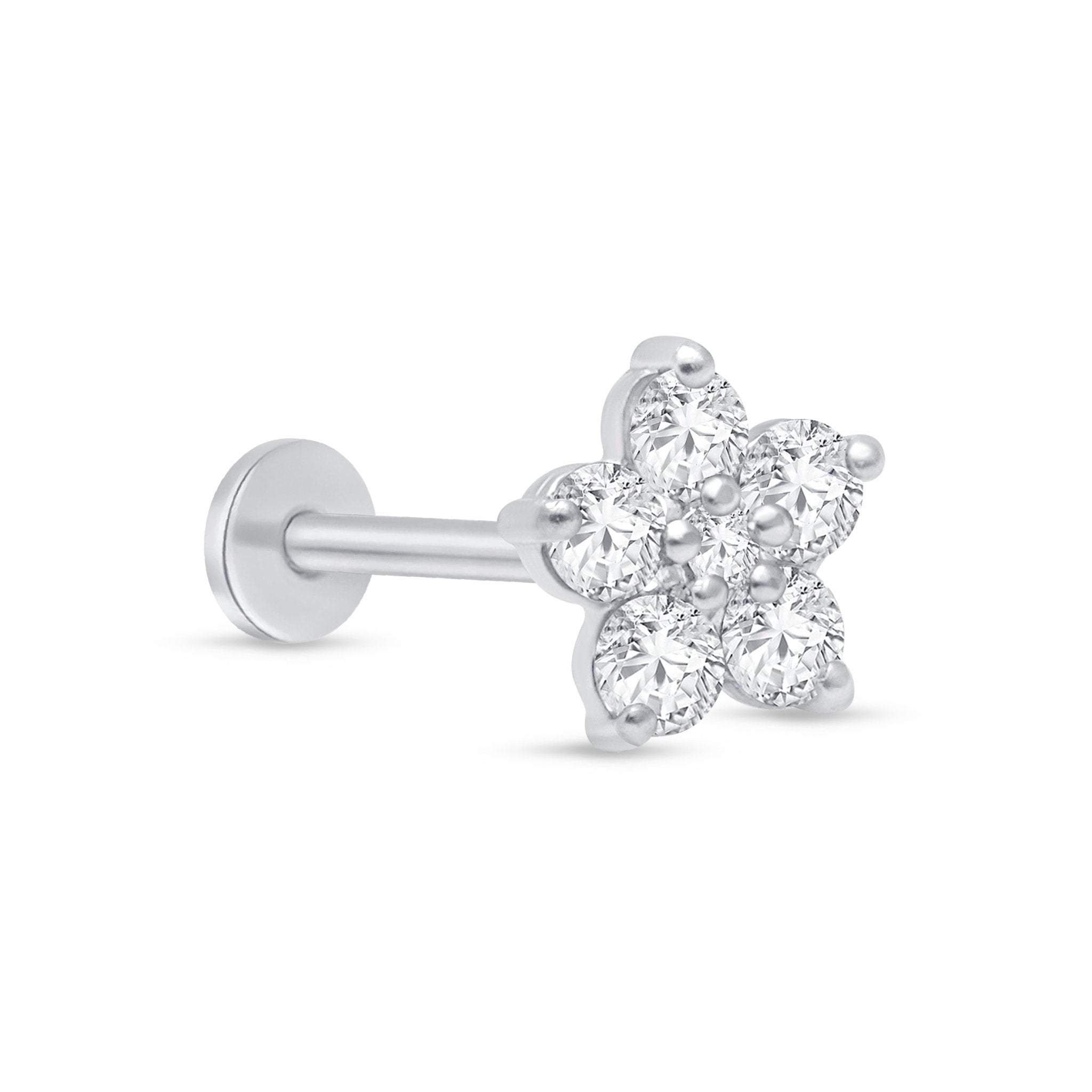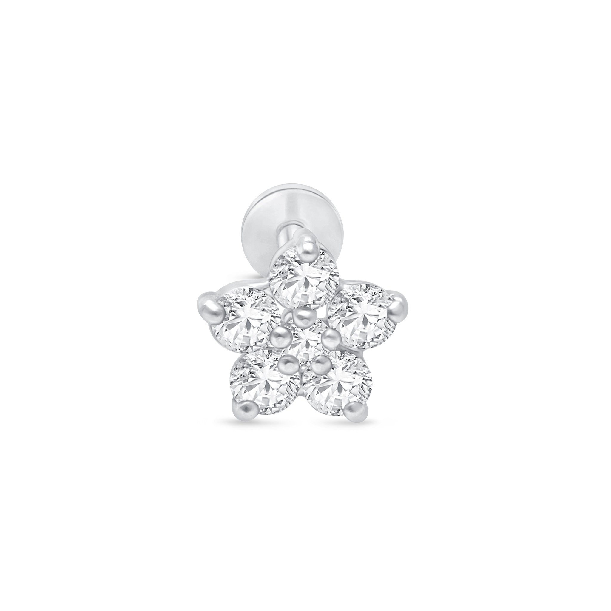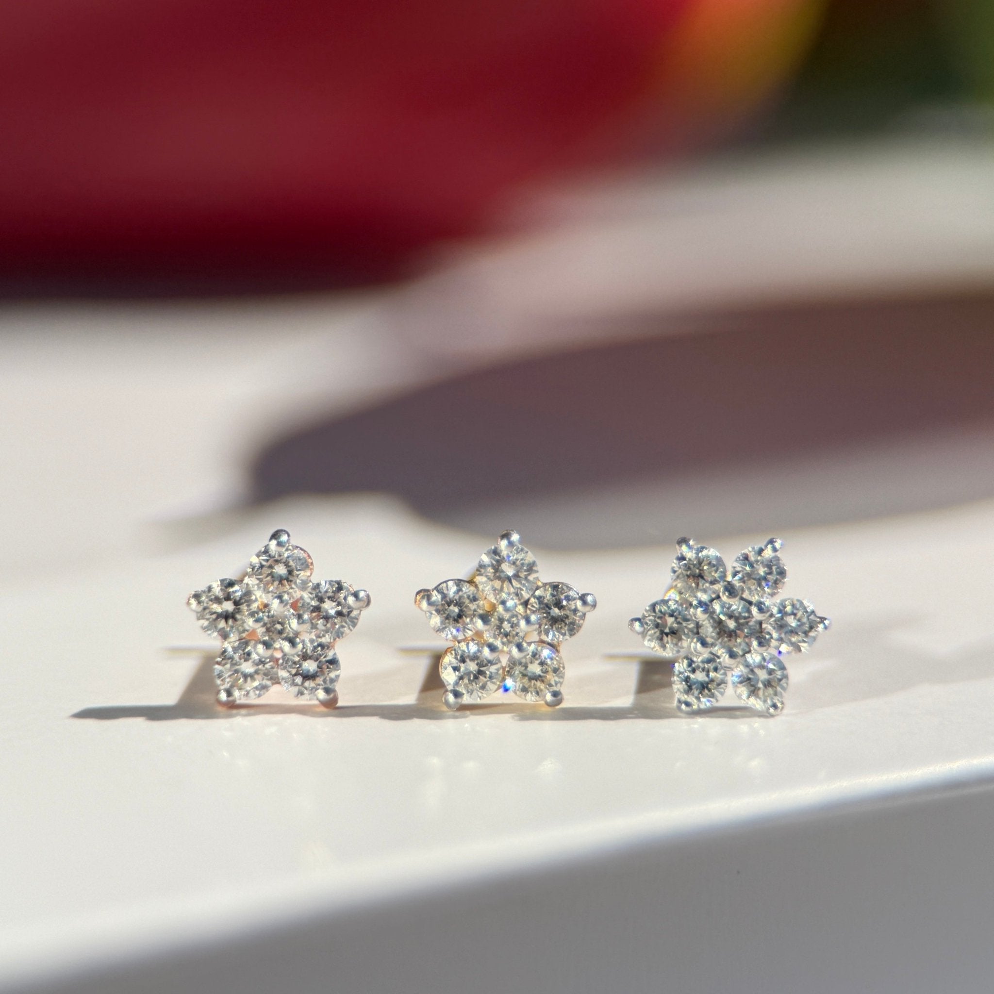 Six Round Diamond Flower Flat Back Stud Earrings in Solid 14k White Gold