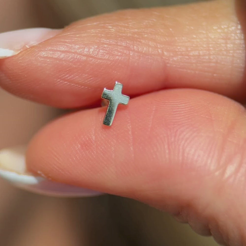 Honor your faith with these 14k solid gold cross stud earrings, a classic and versatile design for lobe, helix, conch, or tragus piercings. Made from solid gold, these dainty studs bring a minimalist touch with meaningful symbolism, ideal for both daily wear and special occasions. Lightweight and hypoallergenic, they provide lasting comfort while expressing devotion with subtle elegance.