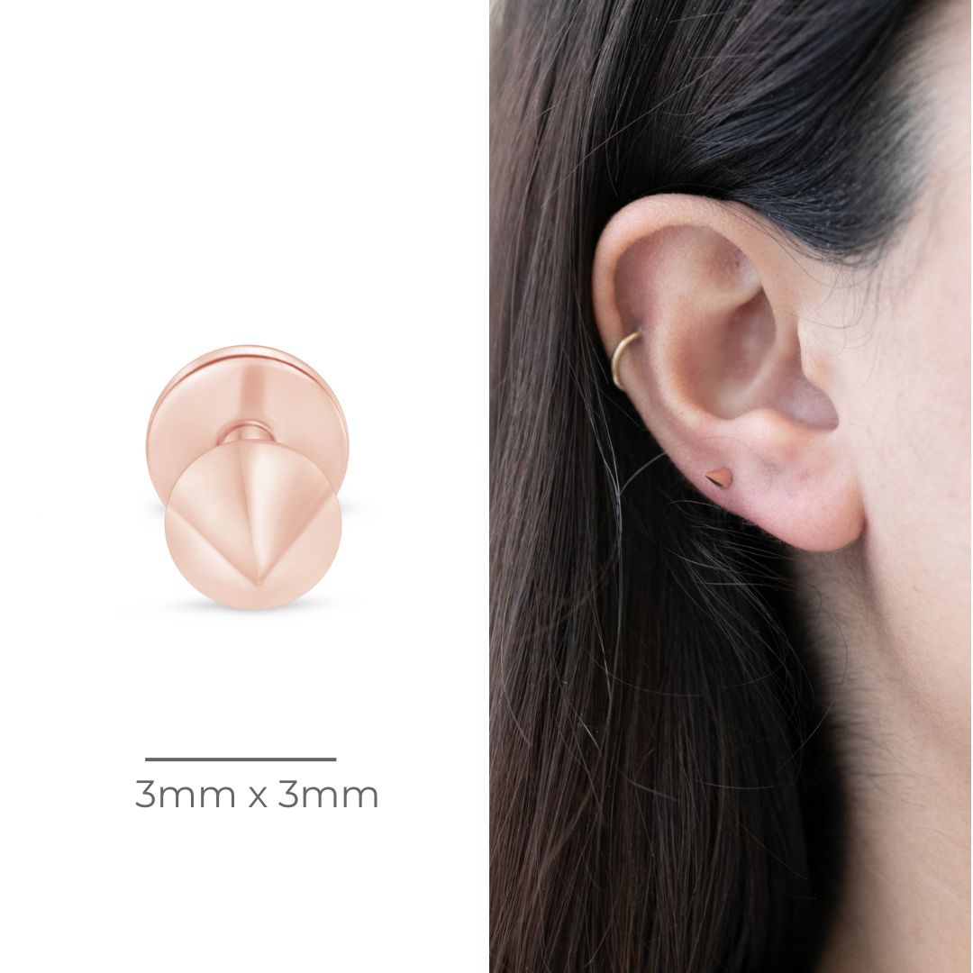 Spike Flat Back Stud Earrings in Solid 14k Rose Gold