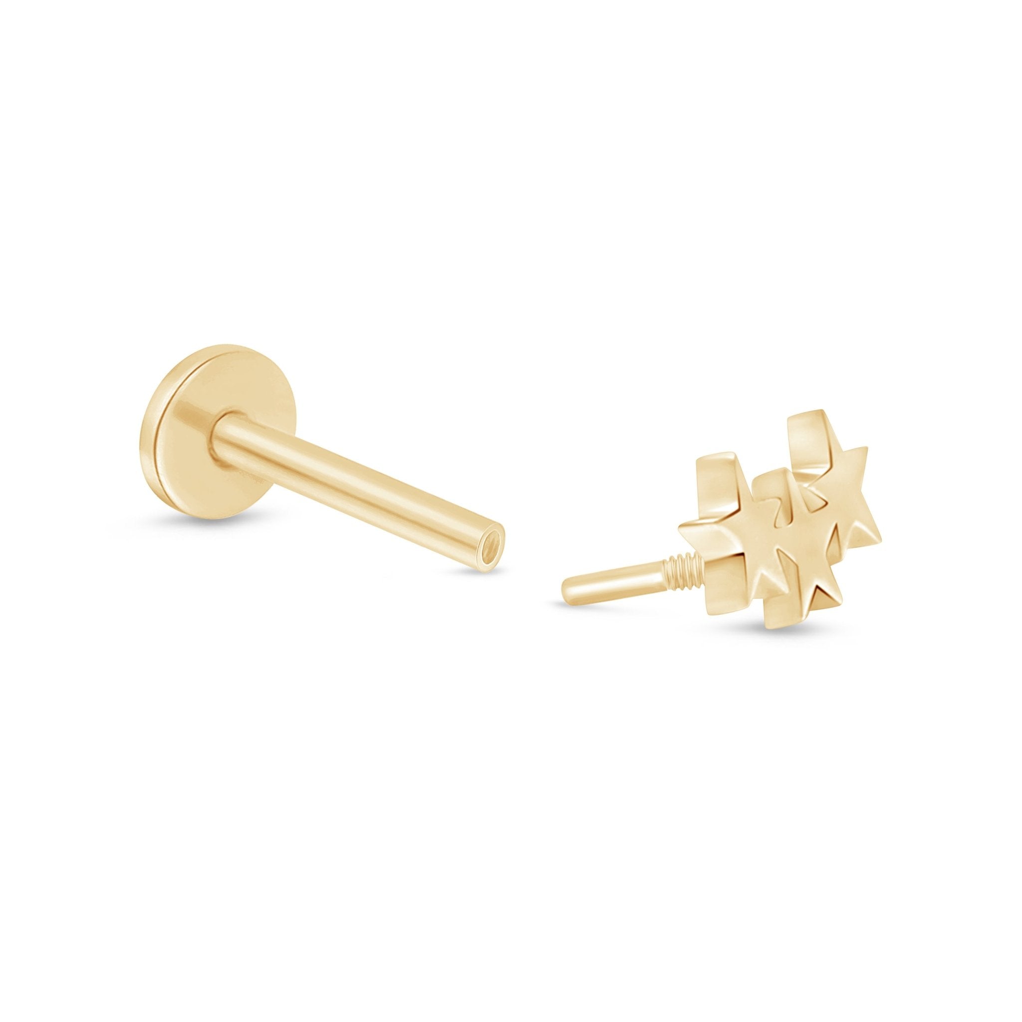 Three Star Flat Back Stud Earrings in Solid 14k Yellow Gold