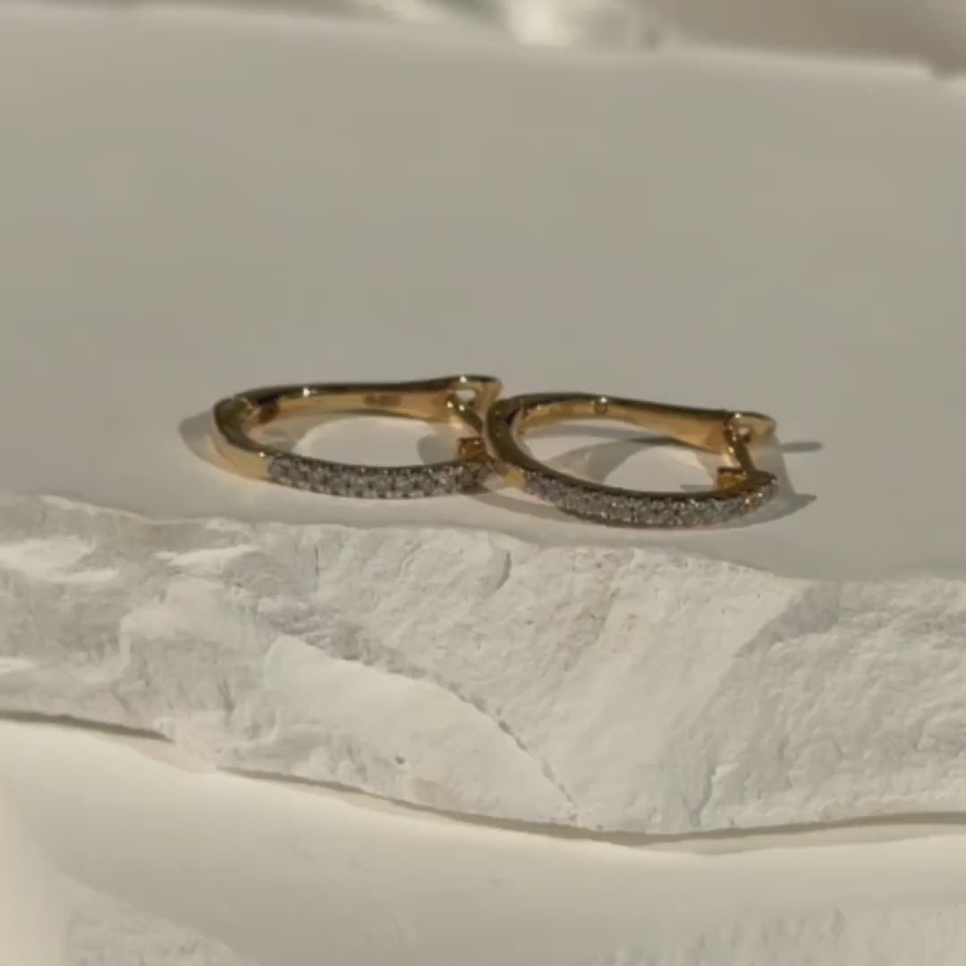 Tiny Diamond Huggie Hoops in 14k Yellow Gold