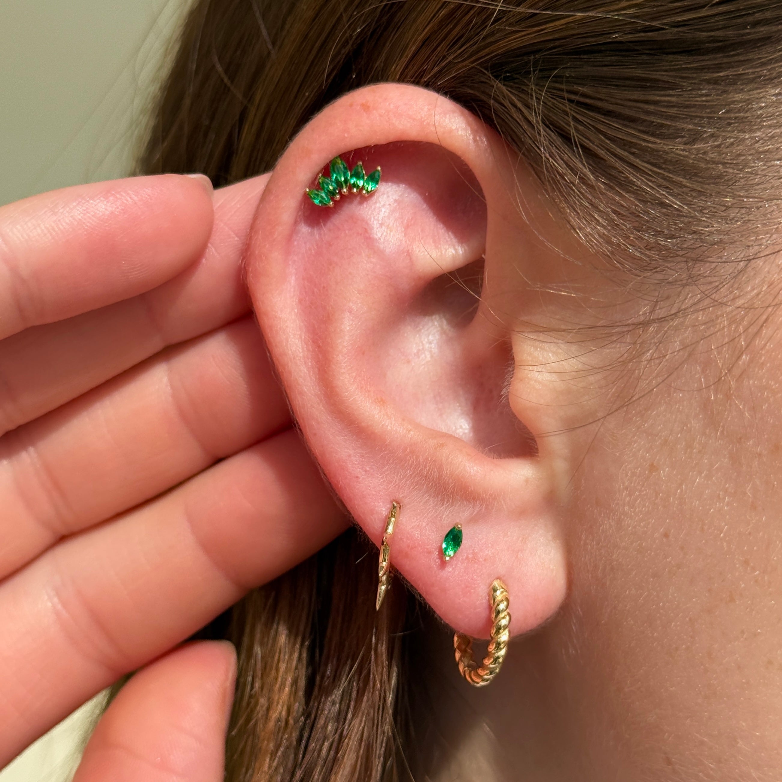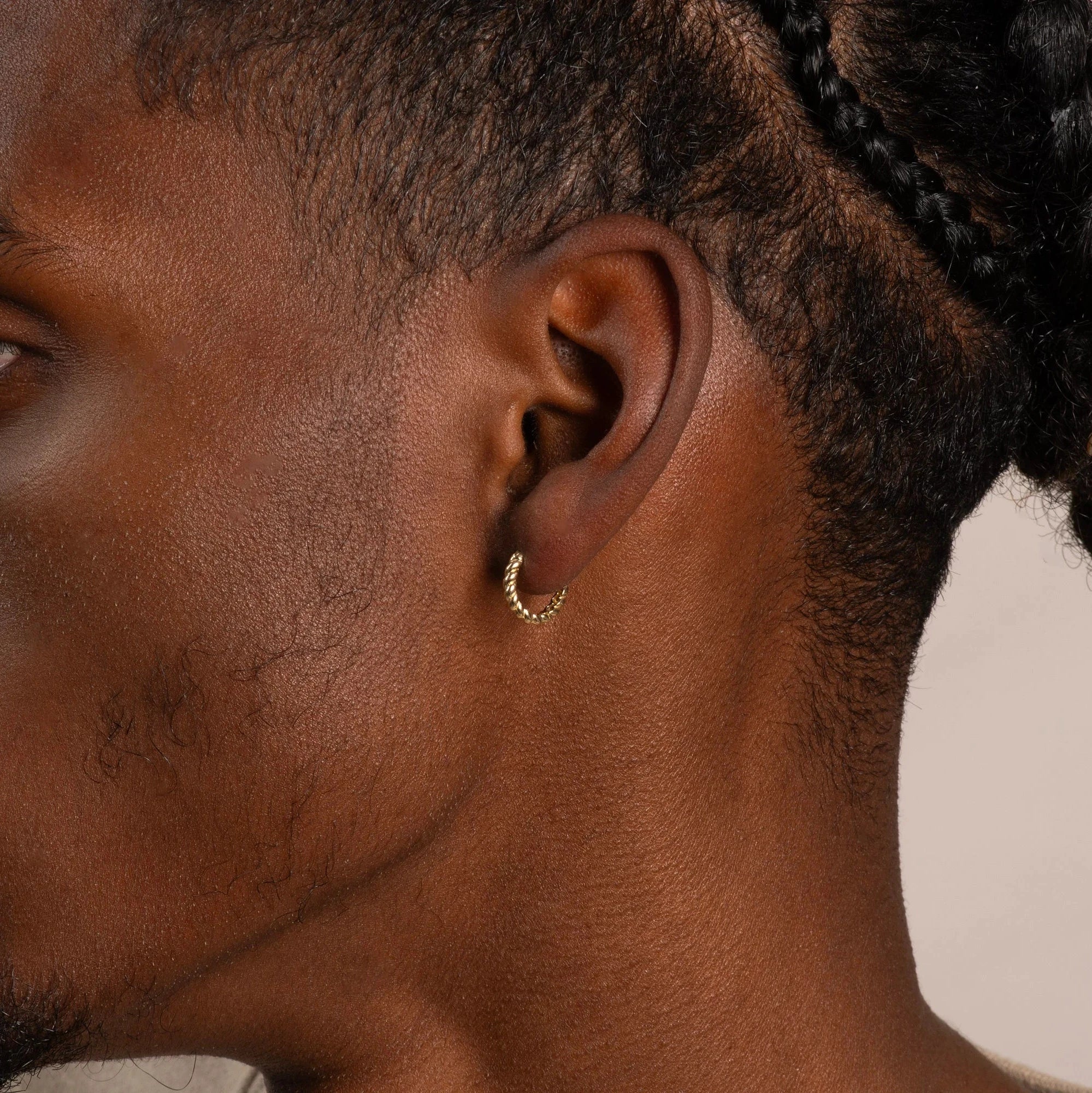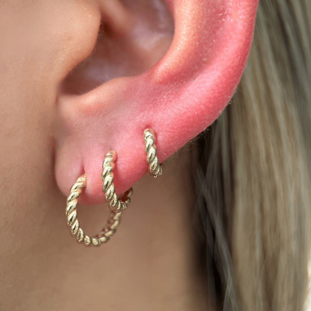 Elevate your style with our exquisite croissant earrings, a mesmerizing twisted gold huggie hoop earring available in 3 sizes. Perfect for cartilage, helix, and conch piercings, these gold cartilage hoops have delicate detailing that effortlessly enhances your look. These dainty huggie earrings are made in solid 14k gold.
