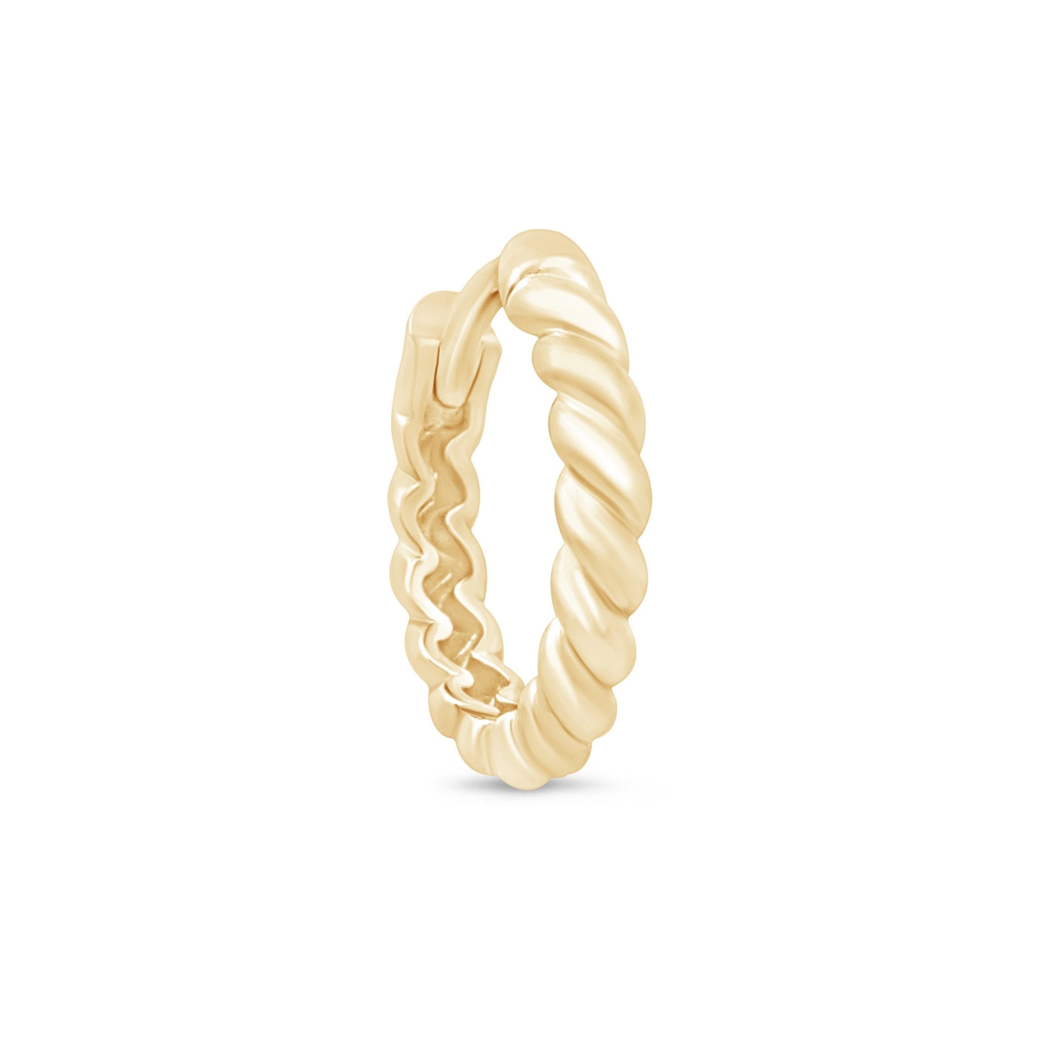 Twisted Rope Huggie Hoop in Solid 14k Yellow Gold