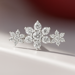 Diamond Three Flower Garland Flat Back Stud Earrings in Solid 14k White Gold