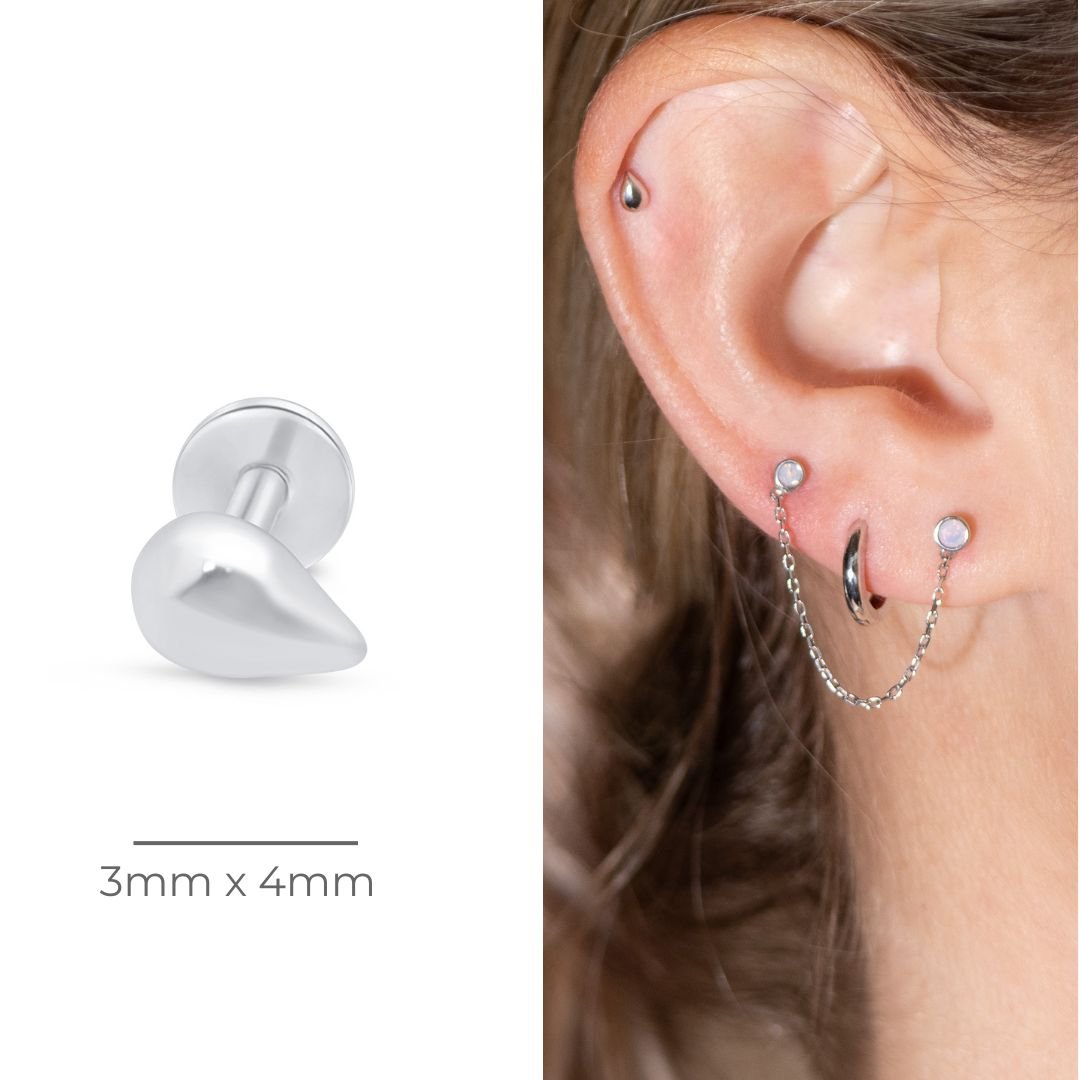 These high-quality 14k gold teardrop droplet piercing studs are an eye-catching, stylish selection for those who seek a unique look for their freshest ear piercing. Hypoallergenic and non-irritating, these premium 14k gold lightweight, petite gold studs are perfect for your any piercings or can easily be matched with small hoops and studs for neighboring ear holes. These premium, hypoallergenic gold piercingstuds finished with internally threaded flat back for comfort. Perfect for everyday wear!