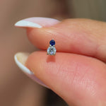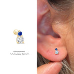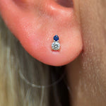This elegant earring features a natural diamond with a tiny natural Sapphire, set in 14K solid gold. Designed for comfort, they include an 18-gauge internally threaded flat back.