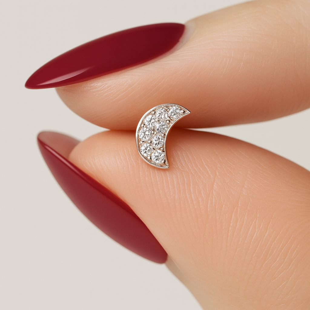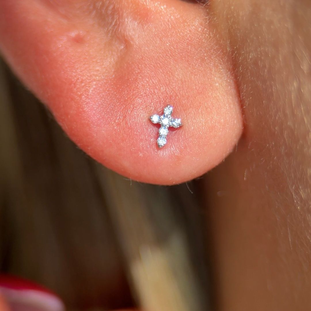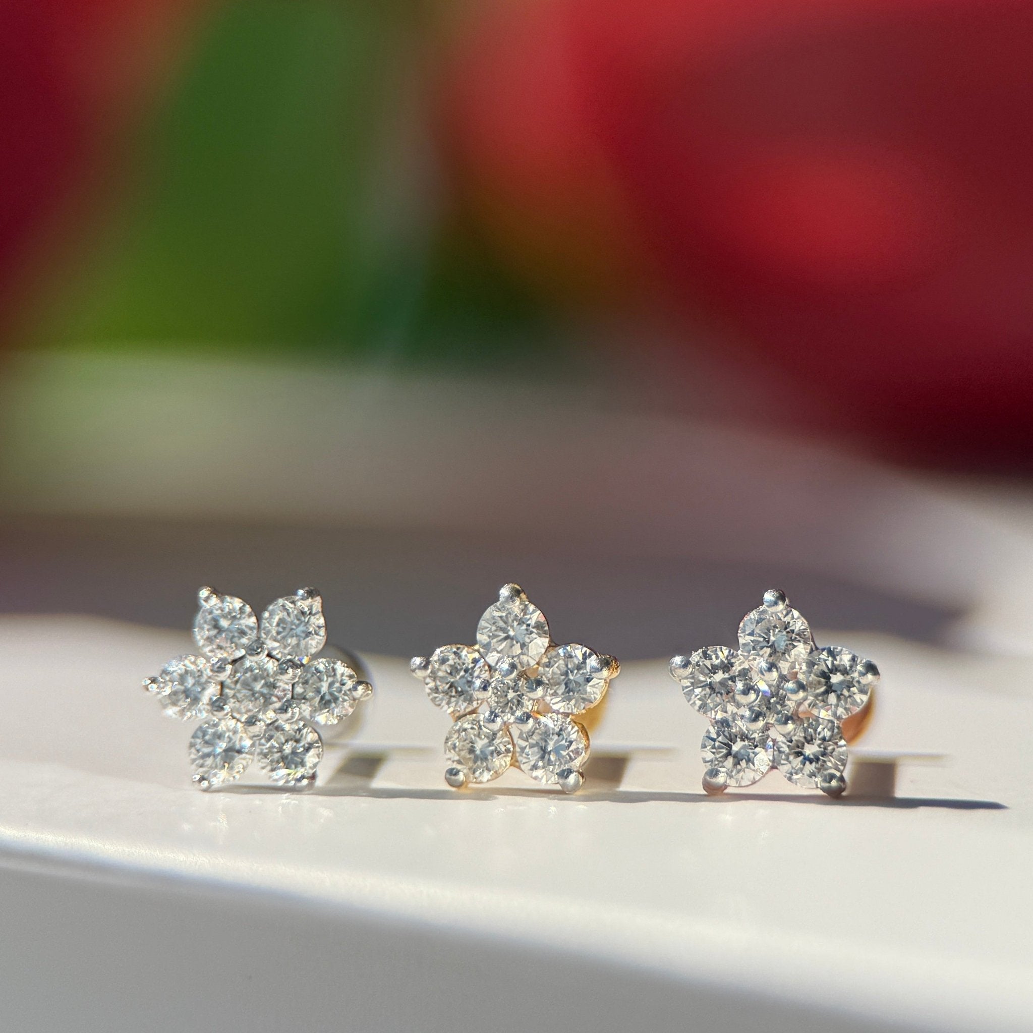 It depends on your style and piercing placement. For a Helix, Conch, Rook, or Cartilage piercing location, we recommend 2mm–3mm (about 0.03–0.10 carats per stud). For a Lobe piercing, statement look, opt for 4mm and up (about 0.25– 1.0 carats per stud) . All of our diamond stud earrings are size-labeled so you can confidently choose your perfect fit.
