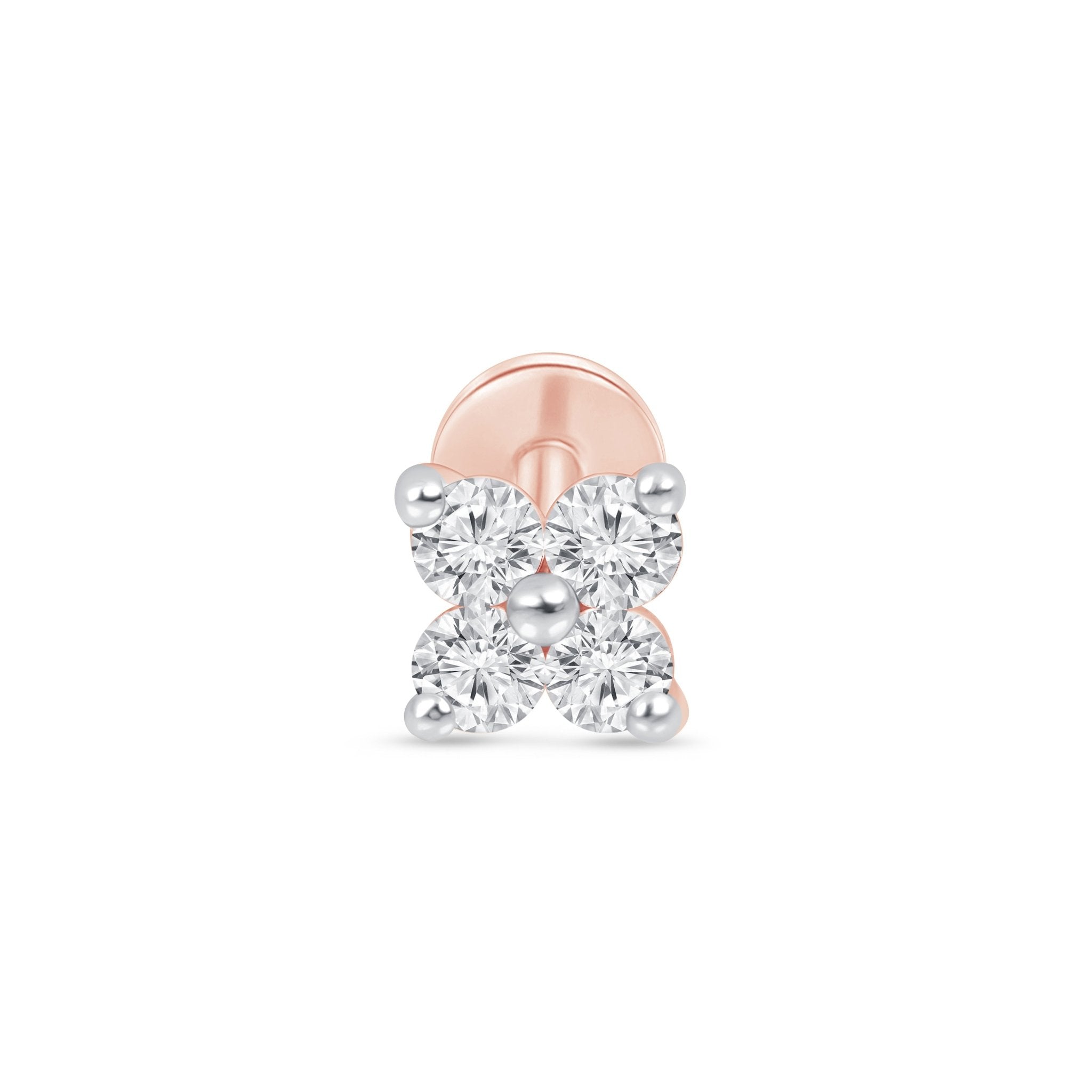 Diamond Four Petal Flower Flat Back Stud Earrings in Solid 14k Rose Gold