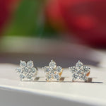 Six Round Diamond Flower Flat Back Stud Earrings in Solid 14k Yellow Gold