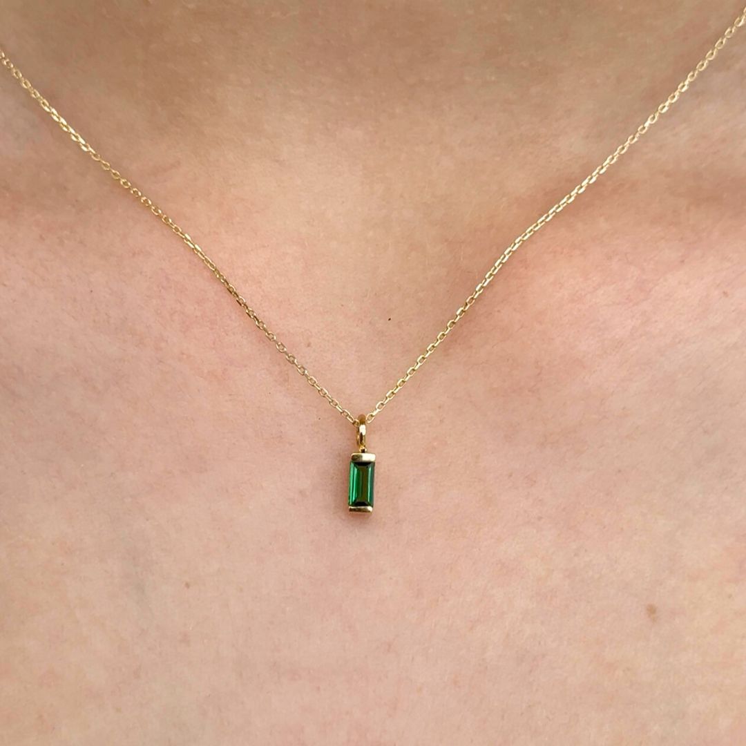 Emerald Baguette Necklace in Solid 14k Yellow Gold