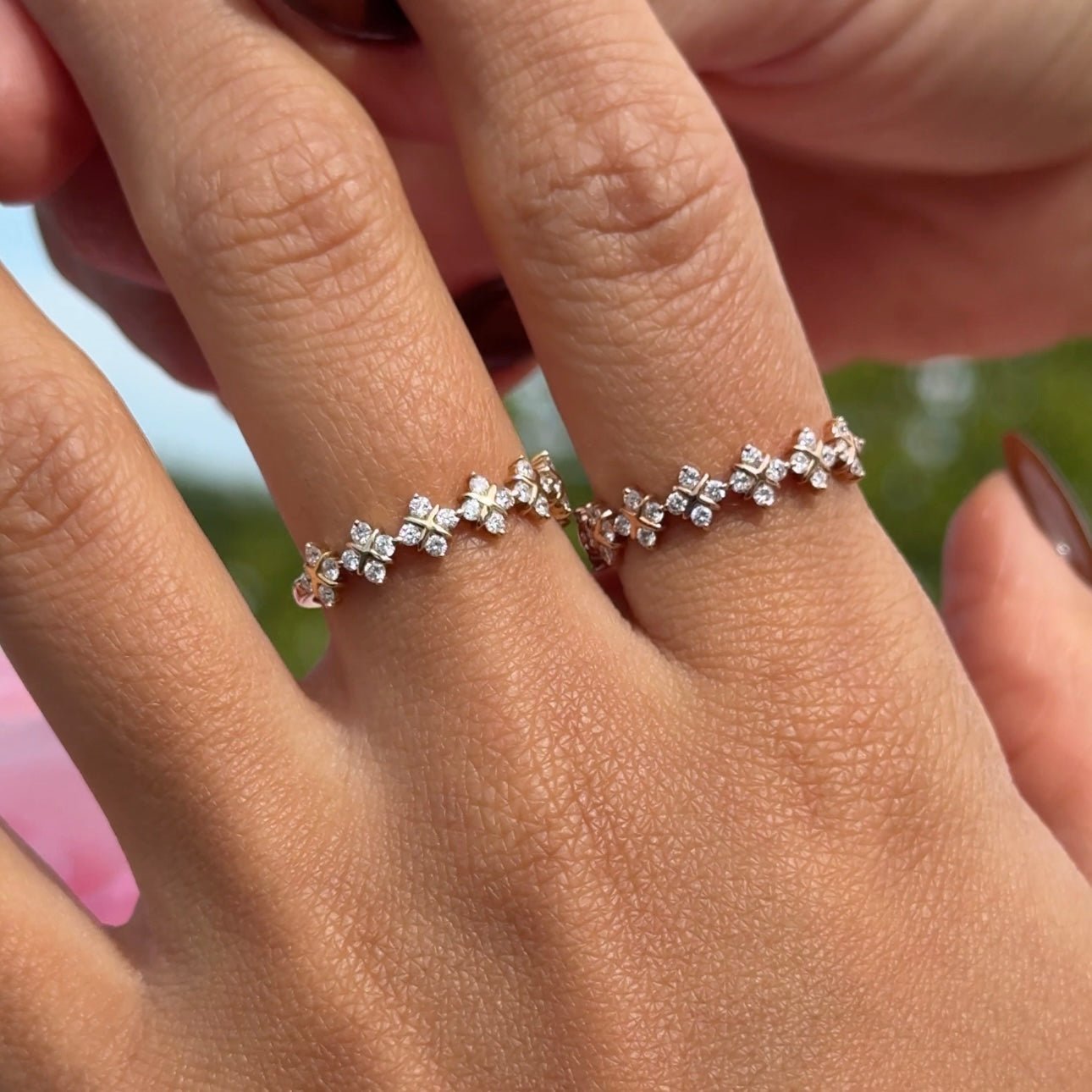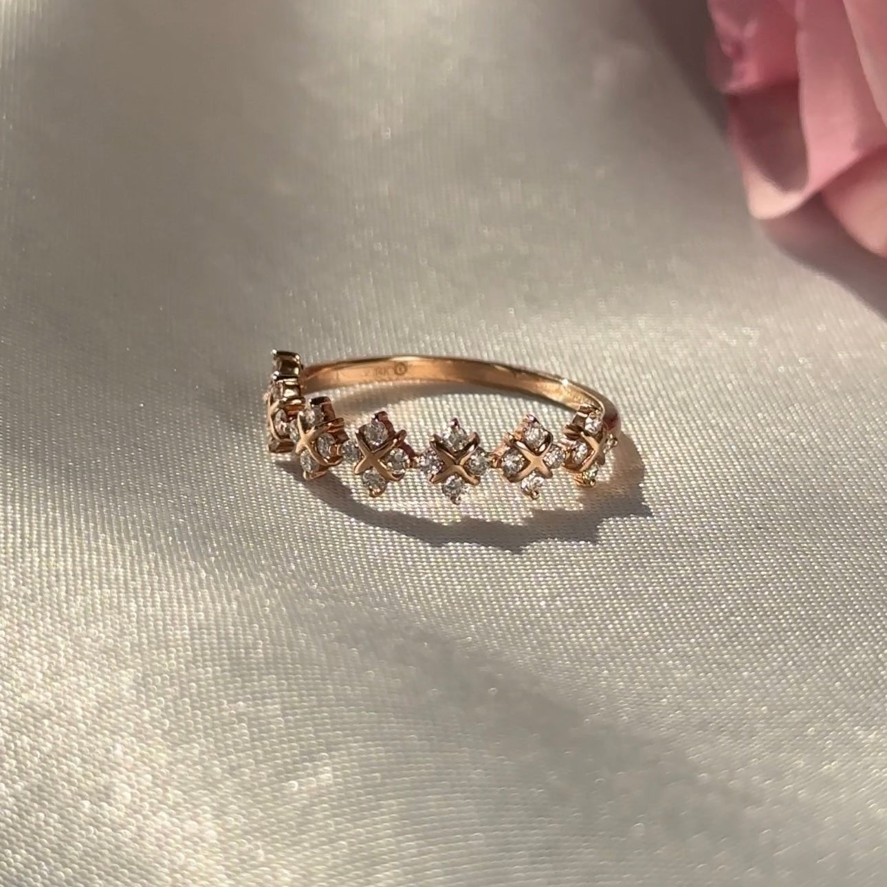Diamond Clover Criss Cross Eternity Ring in Solid 14k Rose Gold