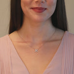 Four Petal Diamond Pavé Flower Necklace in Solid 14k Yellow Gold