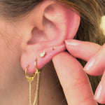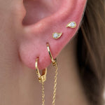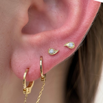 These adorable, high-quality 14k gold paisley diamond piercing stud earrings are perfect for your existing or freshest piercing and are super-cute for pairing and mixing with your other earrings, such as hoops and studs. These premium paisley piercing studs feature a sparkling diamond solitaire stone in the center, adding a pop of luxe sparkle every day you showcase your new style. Made in a bright polished finish, these hypoallergenic and lightweight piercing studs are suitable for all different occasions with their boho-chic presence. Miligrain edges of the paisley give these pretty diamond piercing studs an added detail that will not go unnoticed.