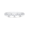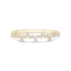 This unique ring features sparkling round cut diamonds set in an asymmetrical formation in 14k gold. It is a beautiful alternative to a traditional engagement ring or a wedding band.