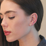 Triple Diamond Huggie Earrings in Solid 14k Yellow Gold