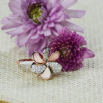 This unique ring is a beautiful way to express your love. The play of pearl and diamond petals creates an elegant look. It is a perfect piece to mark any milestone in your life.