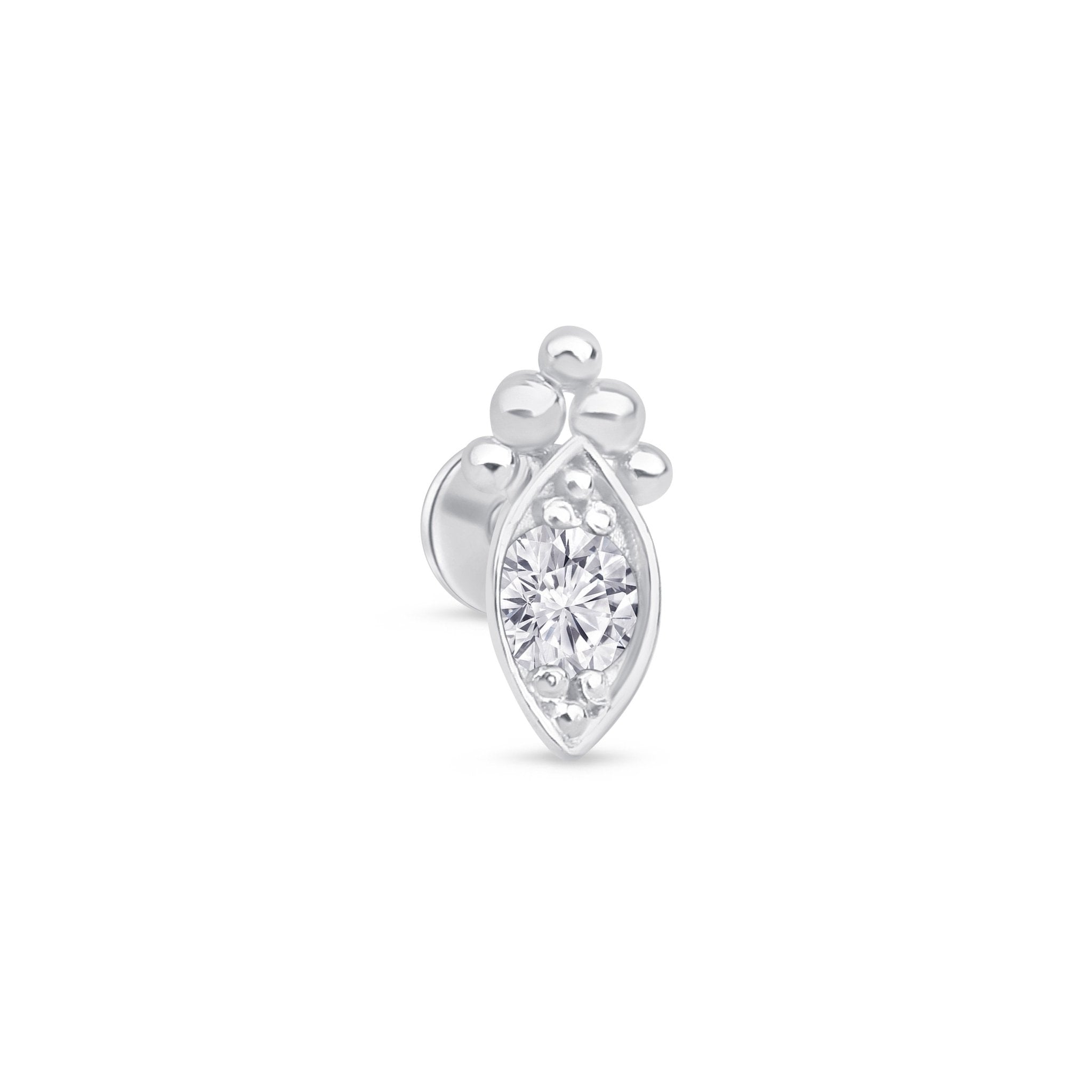 Sleek and refined, this evil eye-inspired marquise stud adds subtle edge to any ear stack. Crafted in 14k solid gold, it features a marquise-cut cubic zirconia framed by delicate beaded detailing. Designed with a threaded 18G post for a snug, secure fit, it’s perfect for helix, cartilage, tragus, or lobe piercings. The flat back can be tailored to your ear with our range of back length options, ensuring all-day comfort. Hypoallergenic and available in yellow or white gold, this minimalist stud shines whether worn solo or styled with others.
