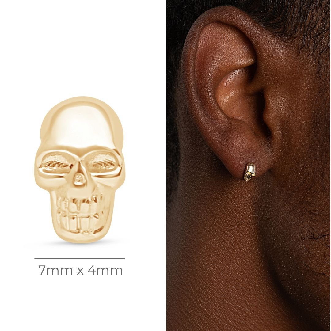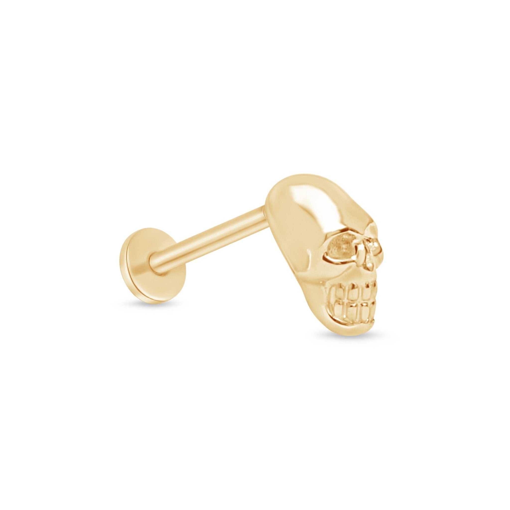 Minimalist Skull Flat Back Stud Earrings in Solid 14k Yellow Gold